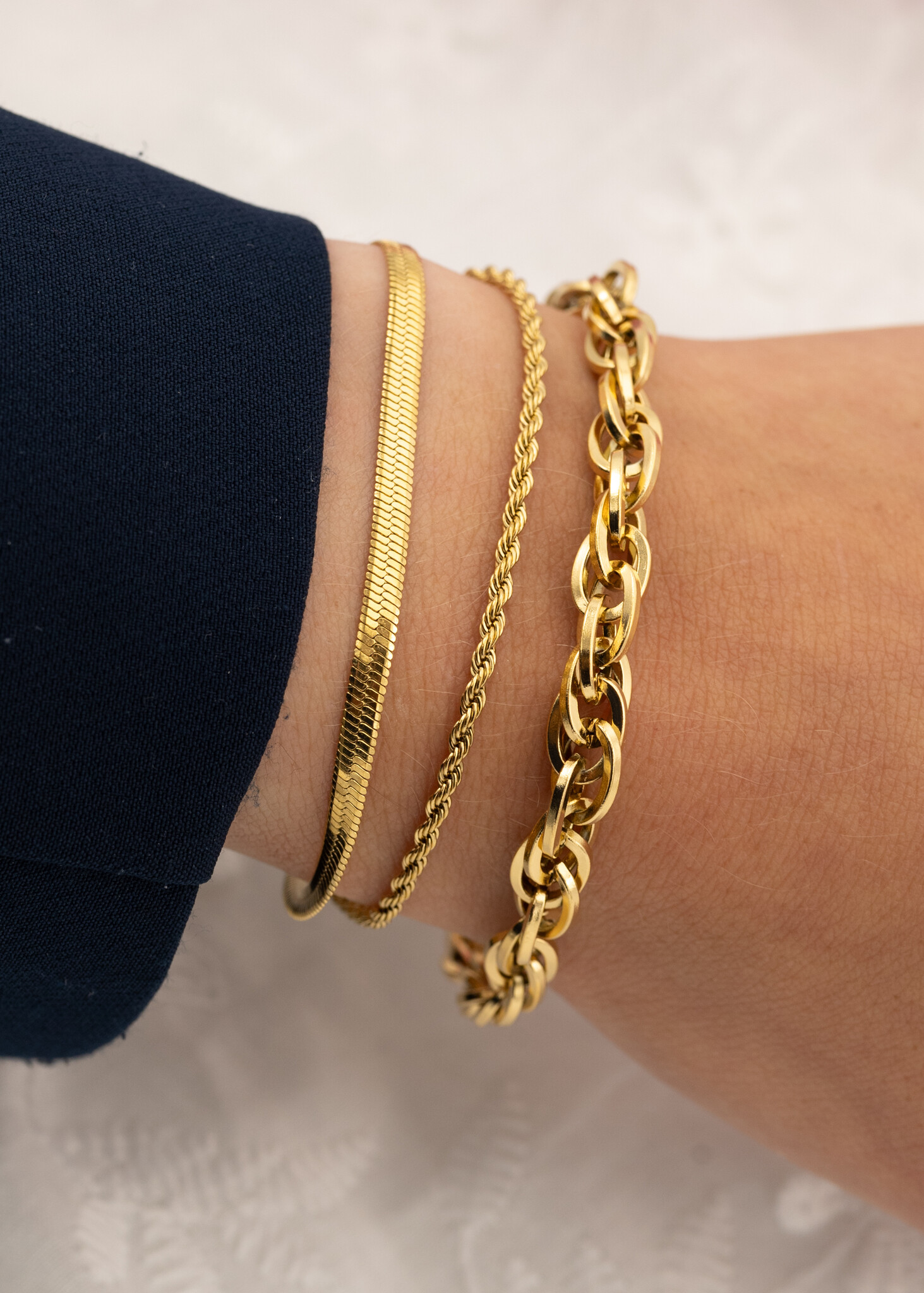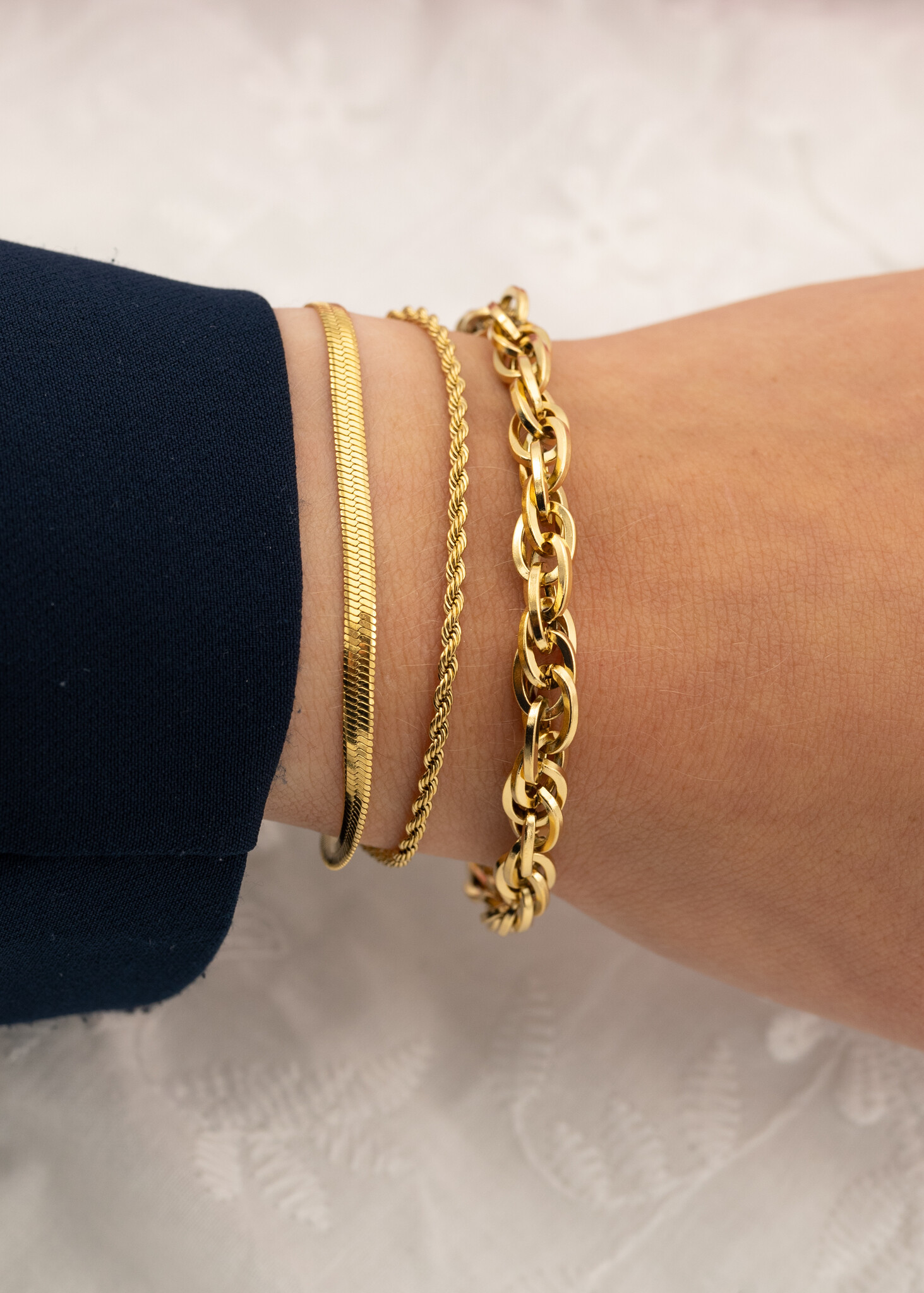 Of je nu een feestje hebt, een dagje gaat shoppen of gewoon je dagelijkse outfit een boost wilt geven, deze gouden armband is altijd een goede keuze!