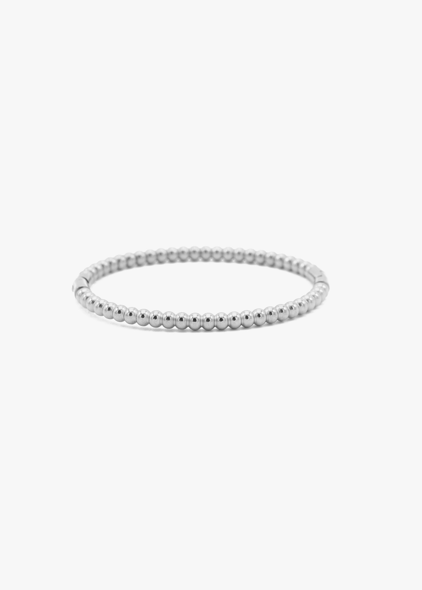 Deze prachtige bangle armband met kralen is een echte eyecatcher! De subtiele glans van de kralen geeft je outfit direct een vleugje elegantie.