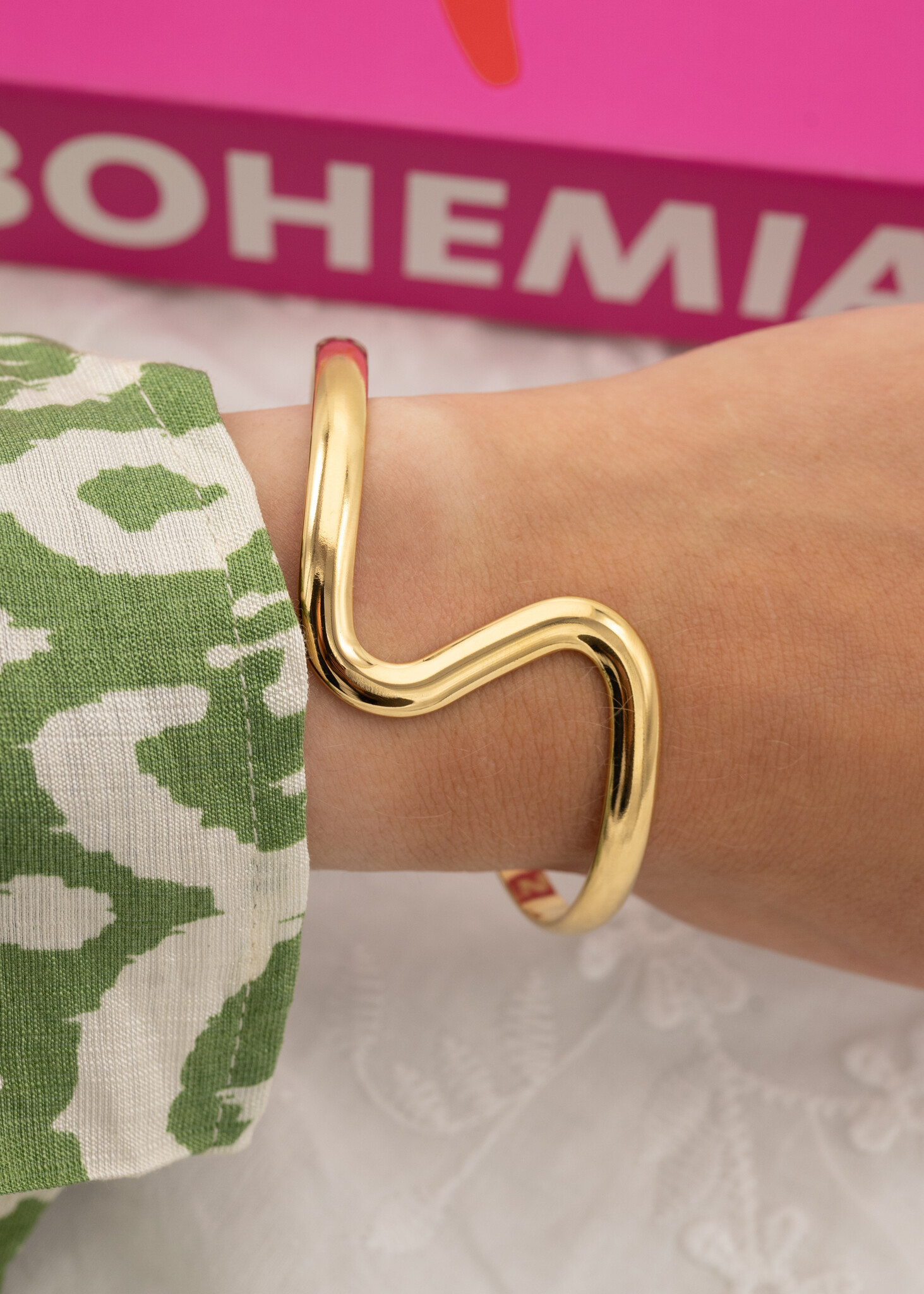 Op zoek naar een accessoire die je outfit net dat beetje extra geeft? Deze prachtige gouden bangle is een echte eyecatcher! Het minimalistische design met de elegante swirl geeft 'm een unieke look die zowel stoer als stijlvol is.