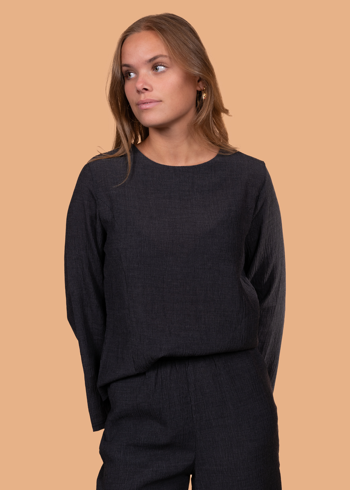 Op zoek naar die ene basic top die je overal mee kunt combineren? Look no further! Deze zwarte top is een echte essential in je garderobe. De lange mouwen en het soepelvallende materiaal geven je een effortless look, terwijl de tijdloze zwarte kleur ervoor zorgt dat je 'm eindeloos kunt stylen.