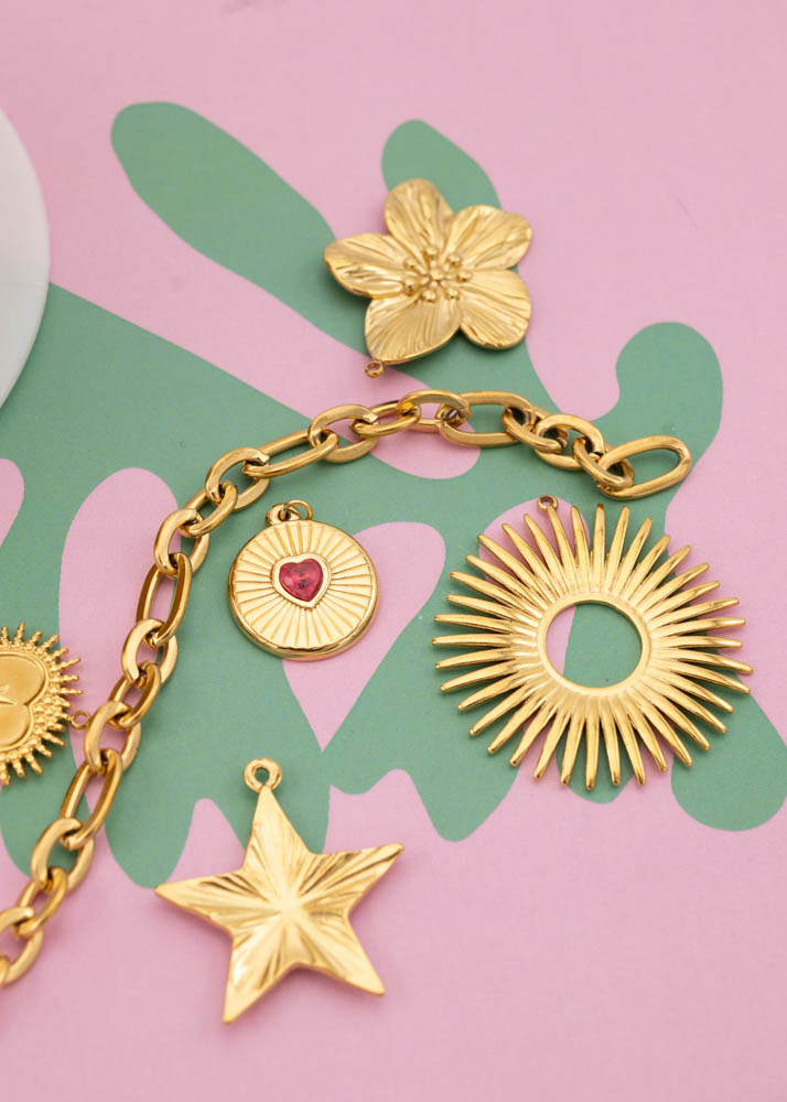 Deze bedel is een echte eyecatcher! Gemaakt van hoogwaardig stainless steel met een prachtige gouden plating, perfect om je favoriete ketting of armband een upgrade te geven. ✨