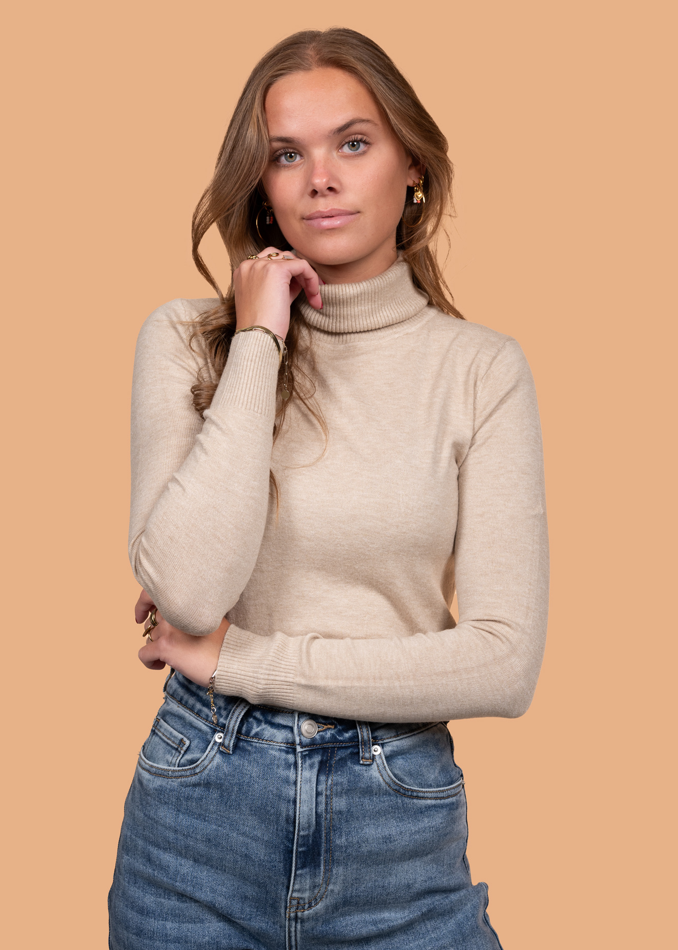Op zoek naar een comfy basic die je garderobe een upgrade geeft? Deze zachte coltrui in het beige is precies wat je nodig hebt! De neutrale kleur maakt hem super veelzijdig, terwijl de col voor een vleugje elegantie zorgt. Perfect voor die frisse herfstwandelingen of knusse winteravonden.