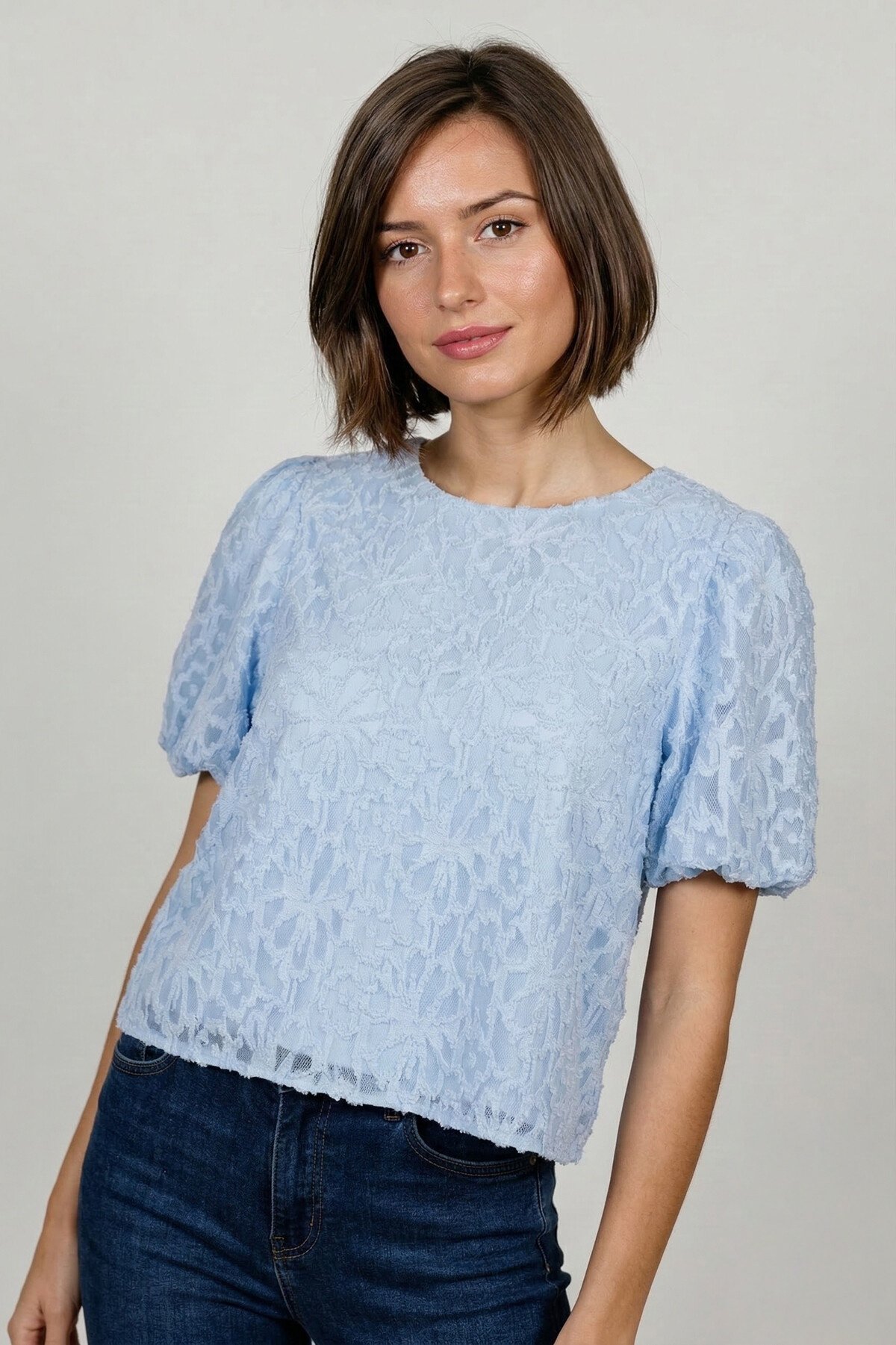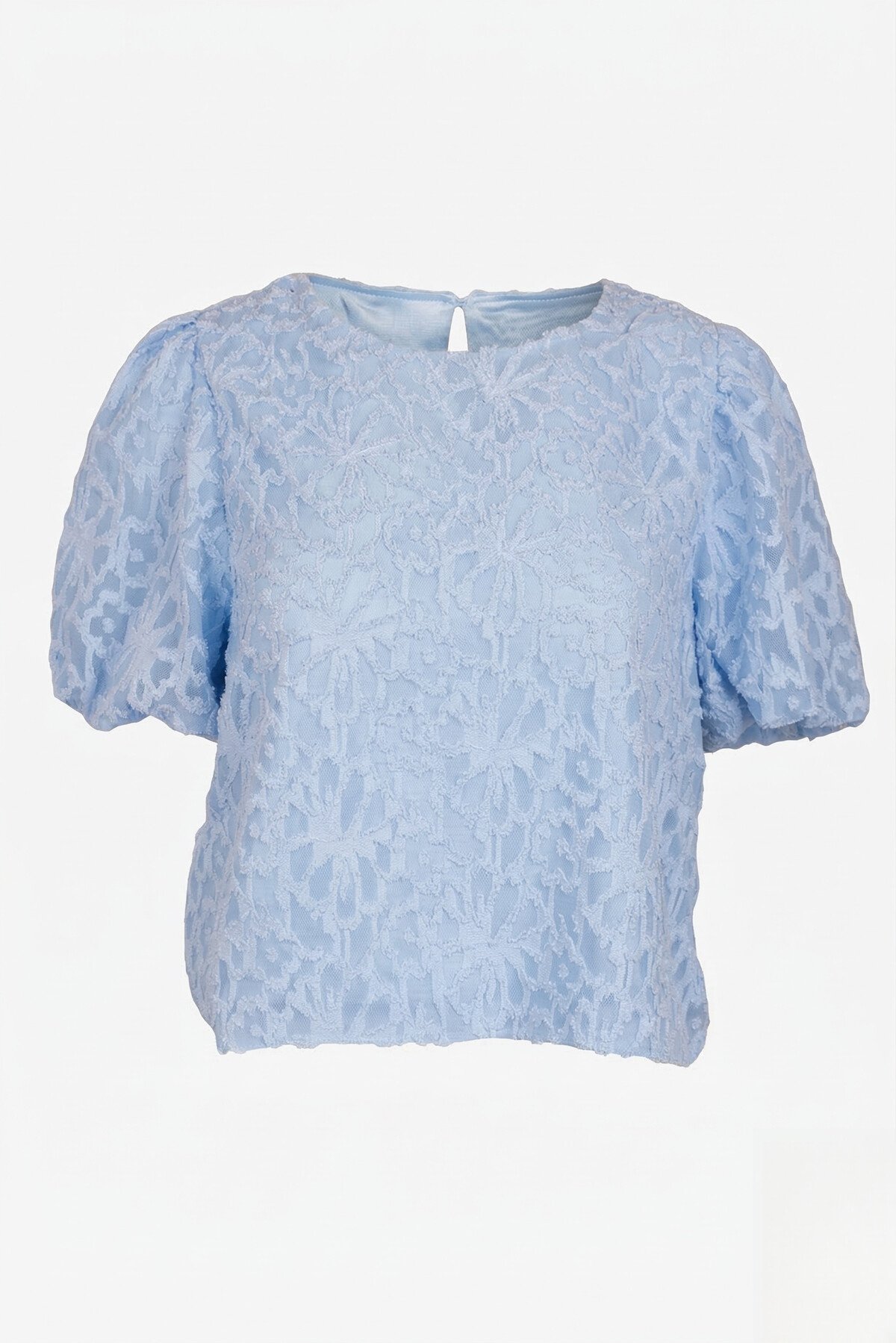 Deze lichtblauwe top met bloemenpatroon is super cute! De pofmouwtjes geven een speels effect. Perfect voor een dagje shoppen of een date. Combineer 'm met je favo jeans!