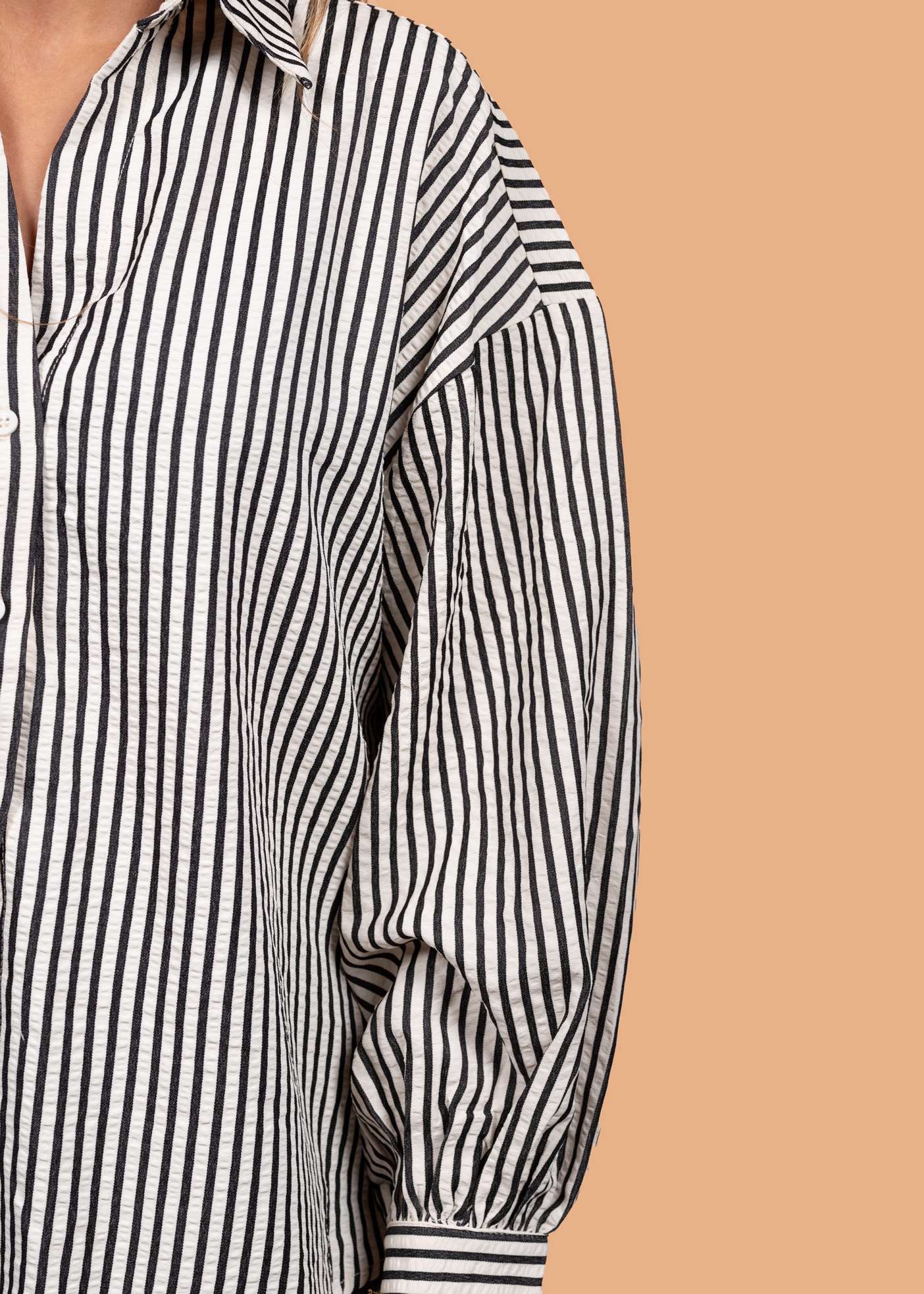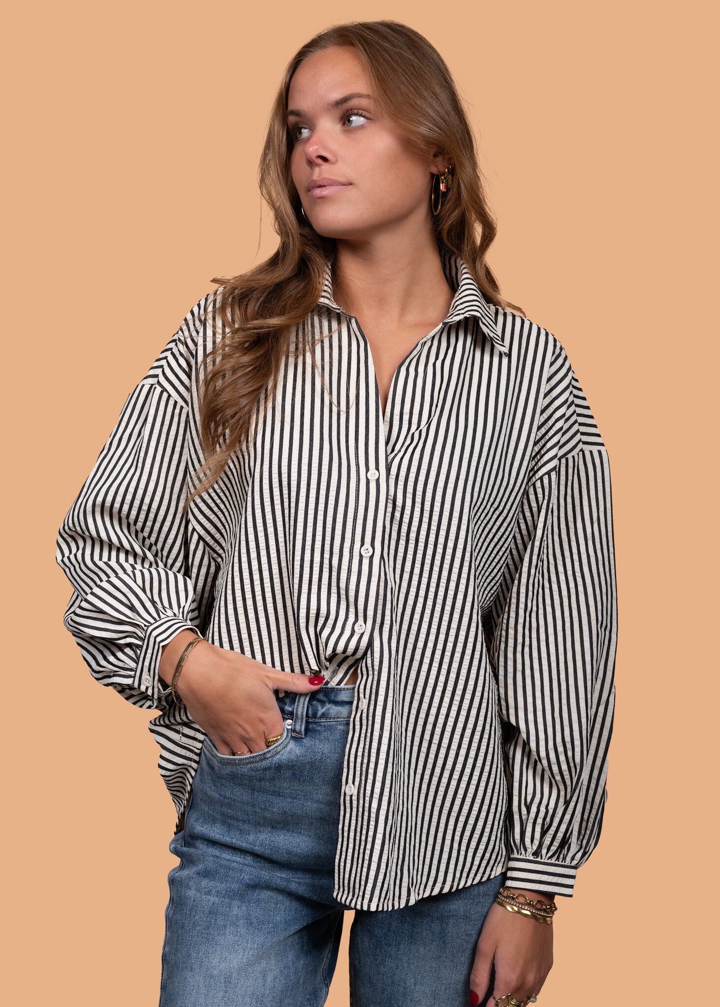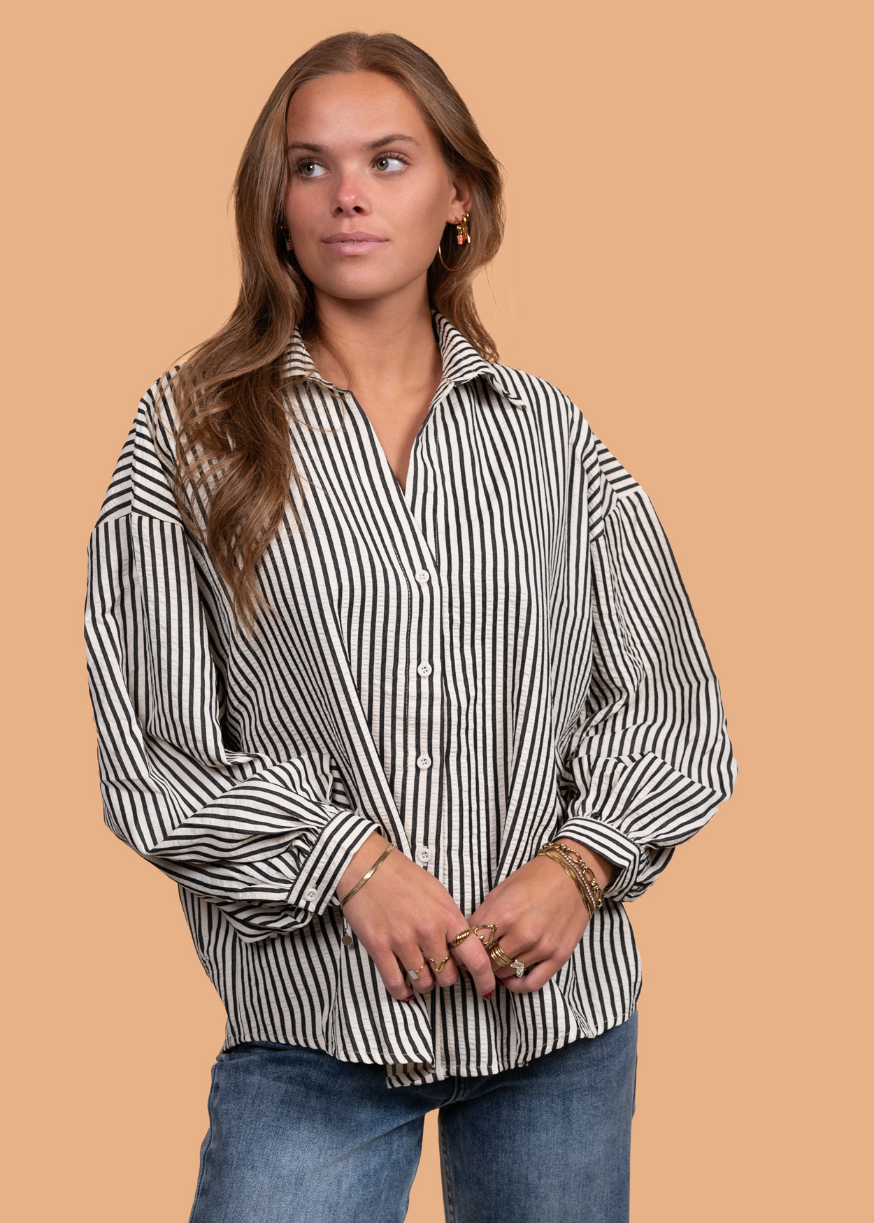 Deze katoenen blouse is een echte essential voor in je garderobe. De zwart/wit gestreepte print is klassiek en makkelijk te combineren, terwijl de oversized pasvorm voor een trendy touch zorgt.