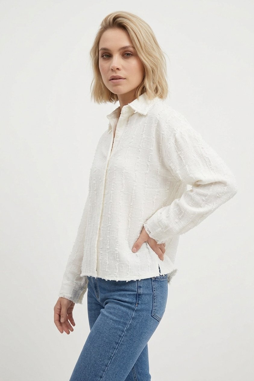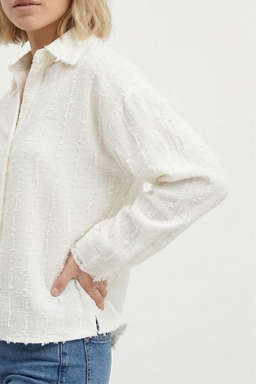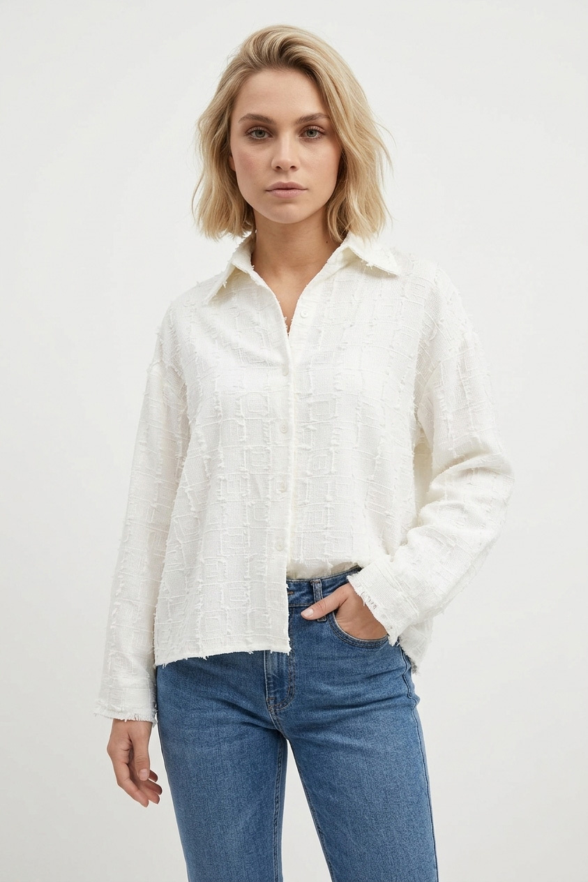Deze blouse met patroon is echt zo'n item dat je keer op keer uit de kast trekt. De stof is superzacht en de pasvorm is lekker relaxed, waardoor hij heerlijk draagt. De gebroken witte kleur maakt 'm makkelijk te combineren en het subtiele patroon geeft net dat beetje extra!