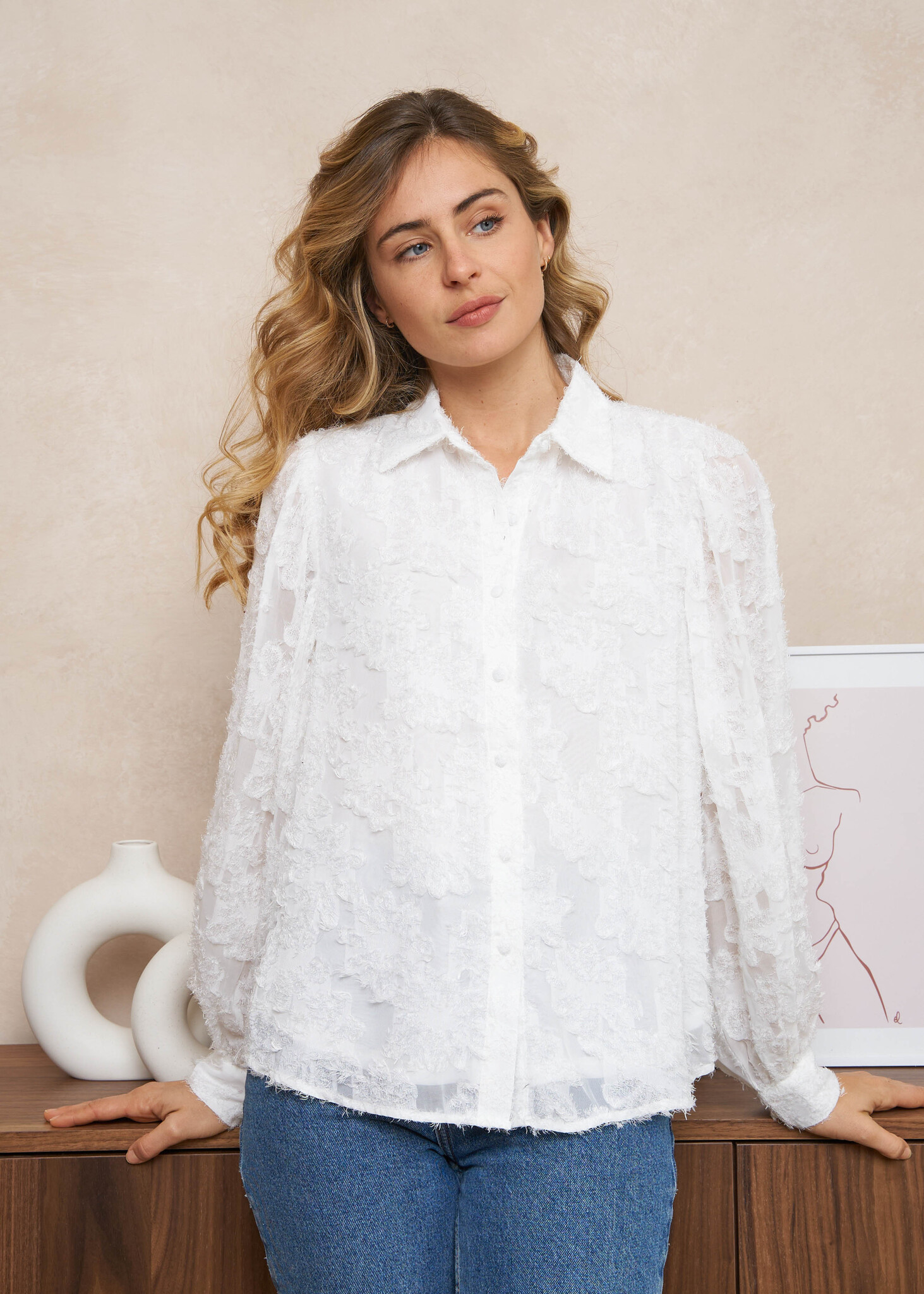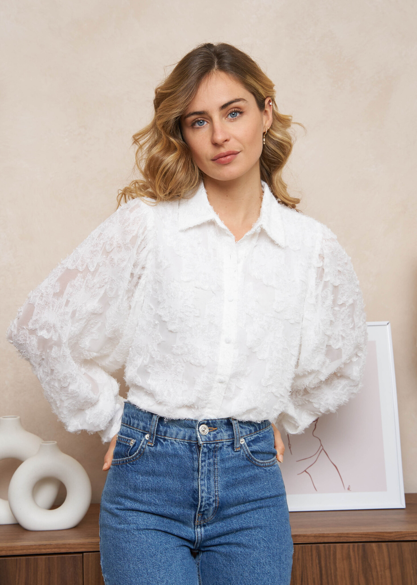 De prachtige, zwierige stof en de trendy pofmouwen geven deze witte blouse een romantische en elegante uitstraling. De blouse is perfect voor een speciale gelegenheid, maar kan ook casual gedragen worden.
