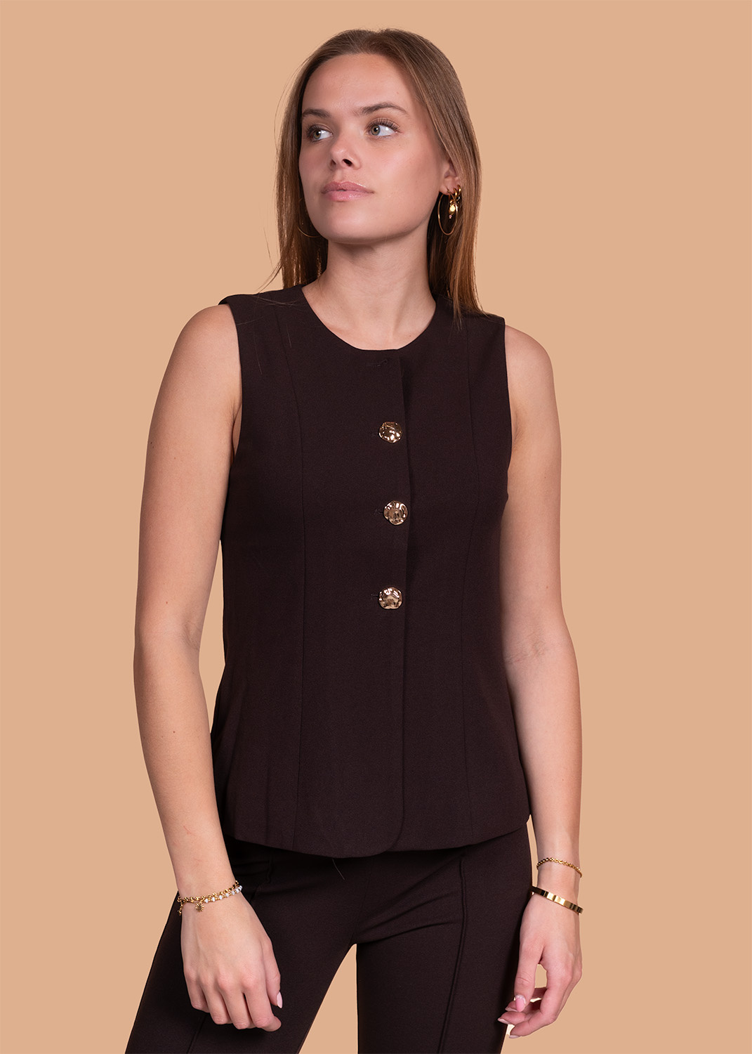 Aan verlanglijst toevoegenChocolade bruine gilet Maya✨ 4.8 / 5 score via Google Reviews 39,99 Incl. btw Op voorraad Zit jouw maat of kleur er niet meer bij? Ontvang een seintje!Maat S M L XLSize: *SMLXLIn winkelmandjeInloggen voor wishlistVoor 15:00 besteldvandaag verzondenAchteraf betalenvia Klarna, binnen 14 dagenGratis verzendingvanaf €75Veilig betalenmet beveiligde SSL verbindingBeschrijvingSteel de show met gilet Maya in chocolade bruin! Dit mouwloze vest met gouden knopen en stretch is super veelzijdig. Draag 'm open of dicht, casual of chic. Perfect voor elke gelegenheid!