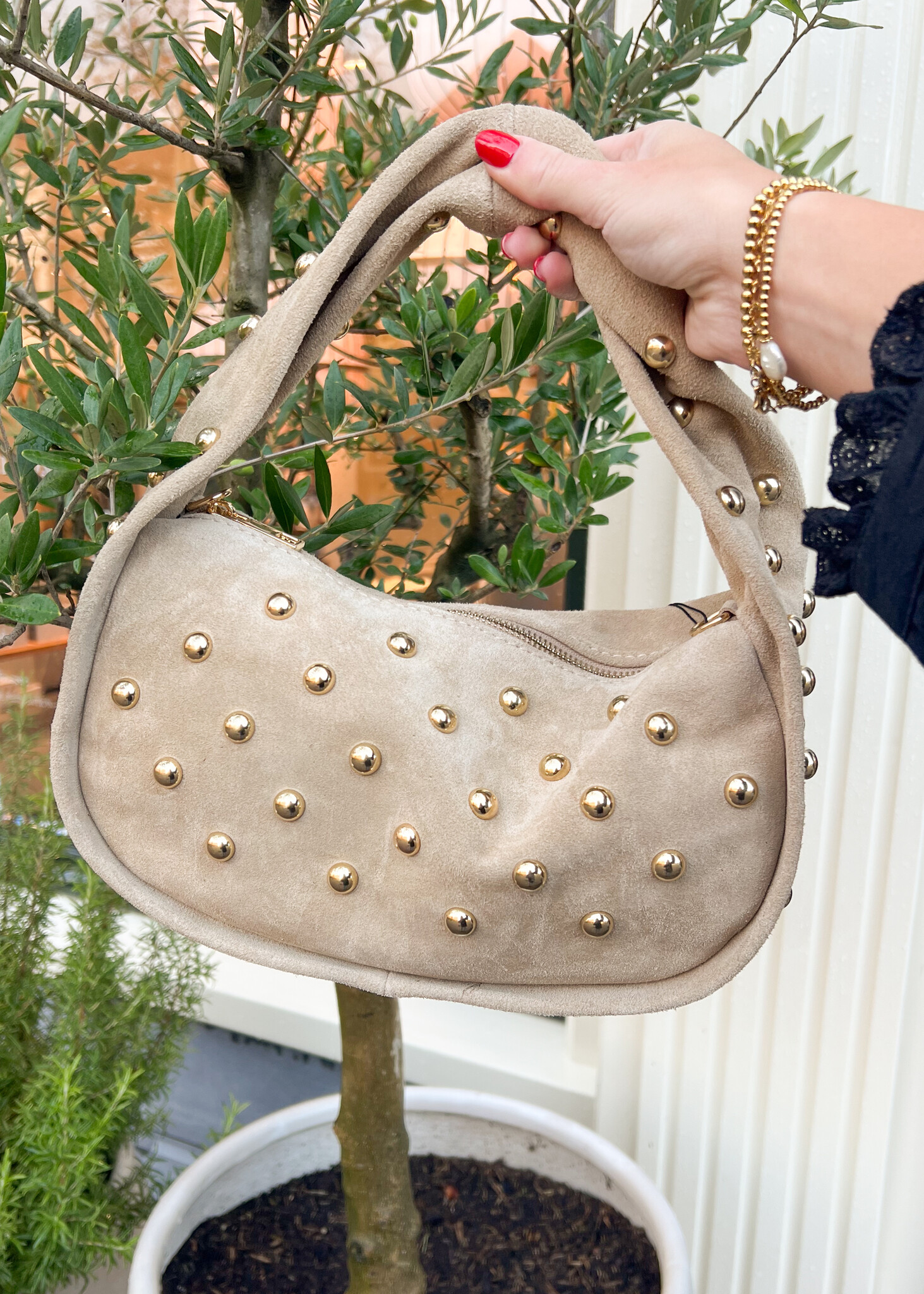 Aan verlanglijst toevoegenLeren handtas suède zand Lot✨ 4.8 / 5 score via Google Reviews 84,99 Incl. btw Op voorraad In winkelmandjeInloggen voor wishlistVoor 15:00 besteldvandaag verzondenAchteraf betalenvia Klarna, binnen 14 dagenGratis verzendingvanaf €75Veilig betalenmet beveiligde SSL verbindingBeschrijvingSteel de show met deze leren handtas! De zandkleurige suède tas is afgewerkt met gouden bolletjes voor een unieke look. Perfect voor een avondje uit of een dagje shoppen. Combineer 'm met je favo outfit!
