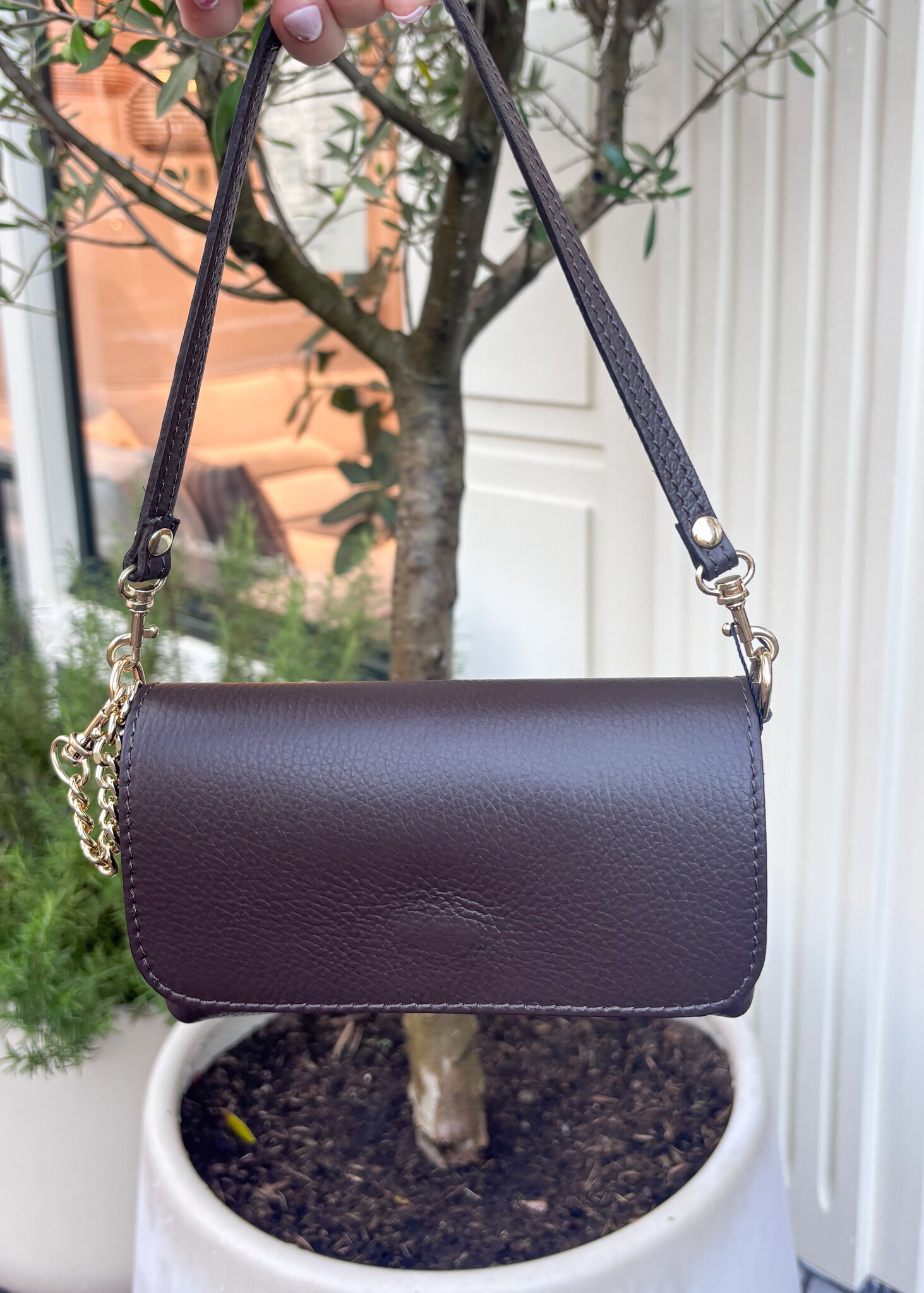 Aan verlanglijst toevoegenLeren schoudertas donkerbruin Lara✨ 4.8 / 5 score via Google Reviews 36,99 Incl. btw Op voorraad In winkelmandjeInloggen voor wishlistVoor 15:00 besteldvandaag verzondenAchteraf betalenvia Klarna, binnen 14 dagenGratis verzendingvanaf €75Veilig betalenmet beveiligde SSL verbindingBeschrijvingGa voor stijl met deze leren schoudertas Lara in donkerbruin! Deze tas is perfect voor een avondje uit of een dagje shoppen. De tas is gemaakt van hoogwaardig leer en heeft een mooie afwerking.