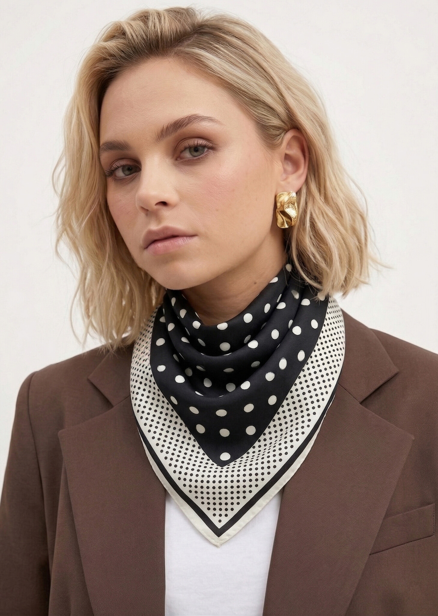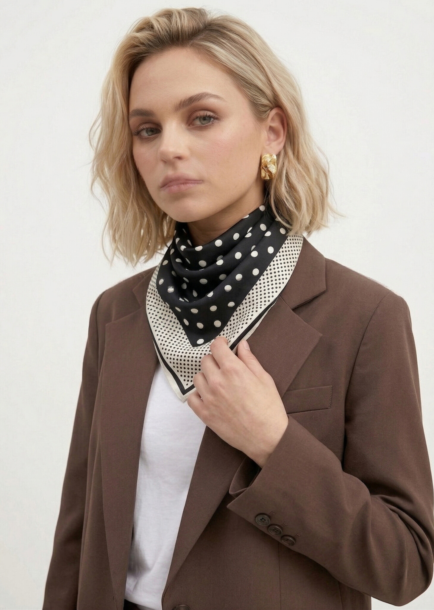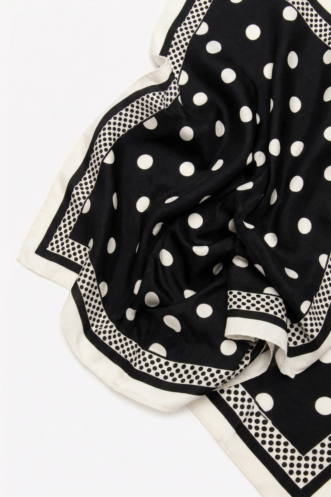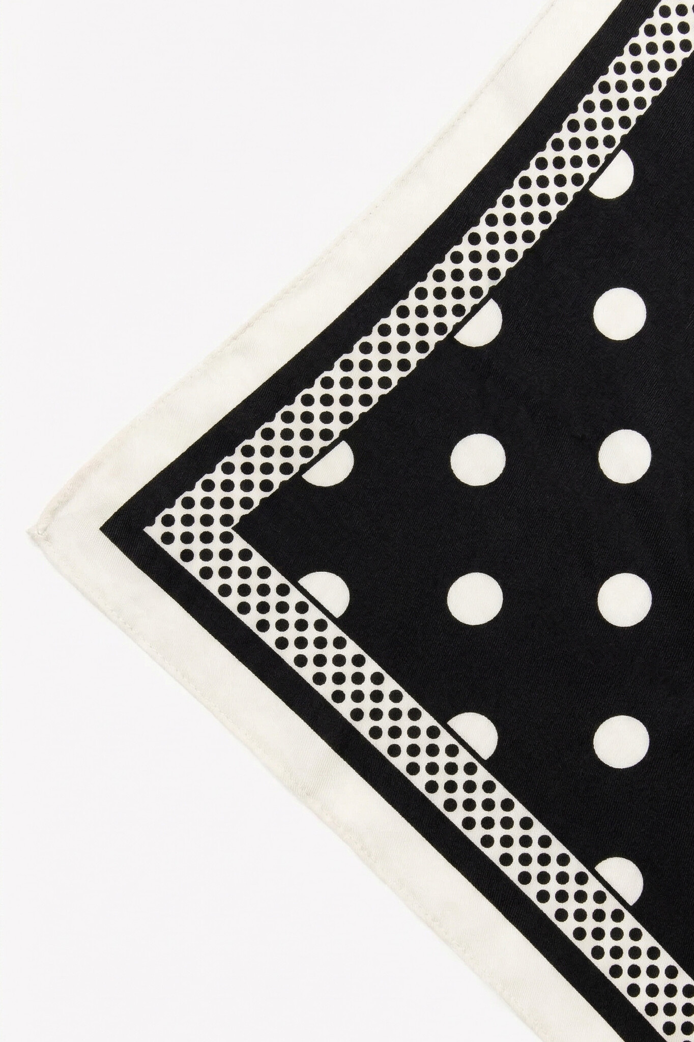 Dit zwarte satijn sjaaltje is de perfecte accessoire om je look net dat beetje extra te geven. De klassieke stippenprint maakt 'm super veelzijdig en makkelijk te combineren met al je favoriete outfits. Of je 'm nu draagt om je hals, aan je tas knoopt of als haaraccessoire gebruikt, dit sjaaltje is een echte must-have!