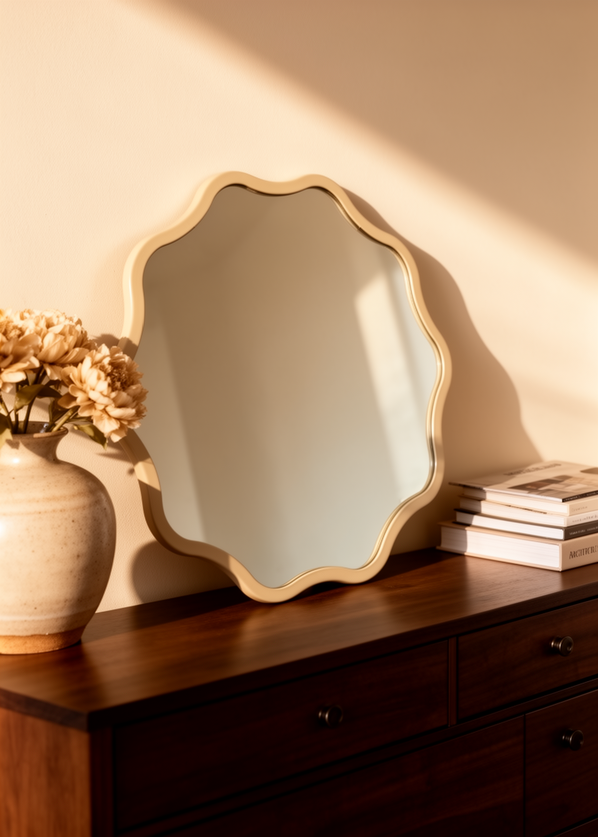 Deze spiegel is allesbehalve standaard. De organische vorm geeft ’m een speelse, bijna sculpturale uitstraling, terwijl het metalen design zorgt voor een stoere en moderne touch. Perfect om een lege muur tot leven te brengen en nét dat beetje extra karakt