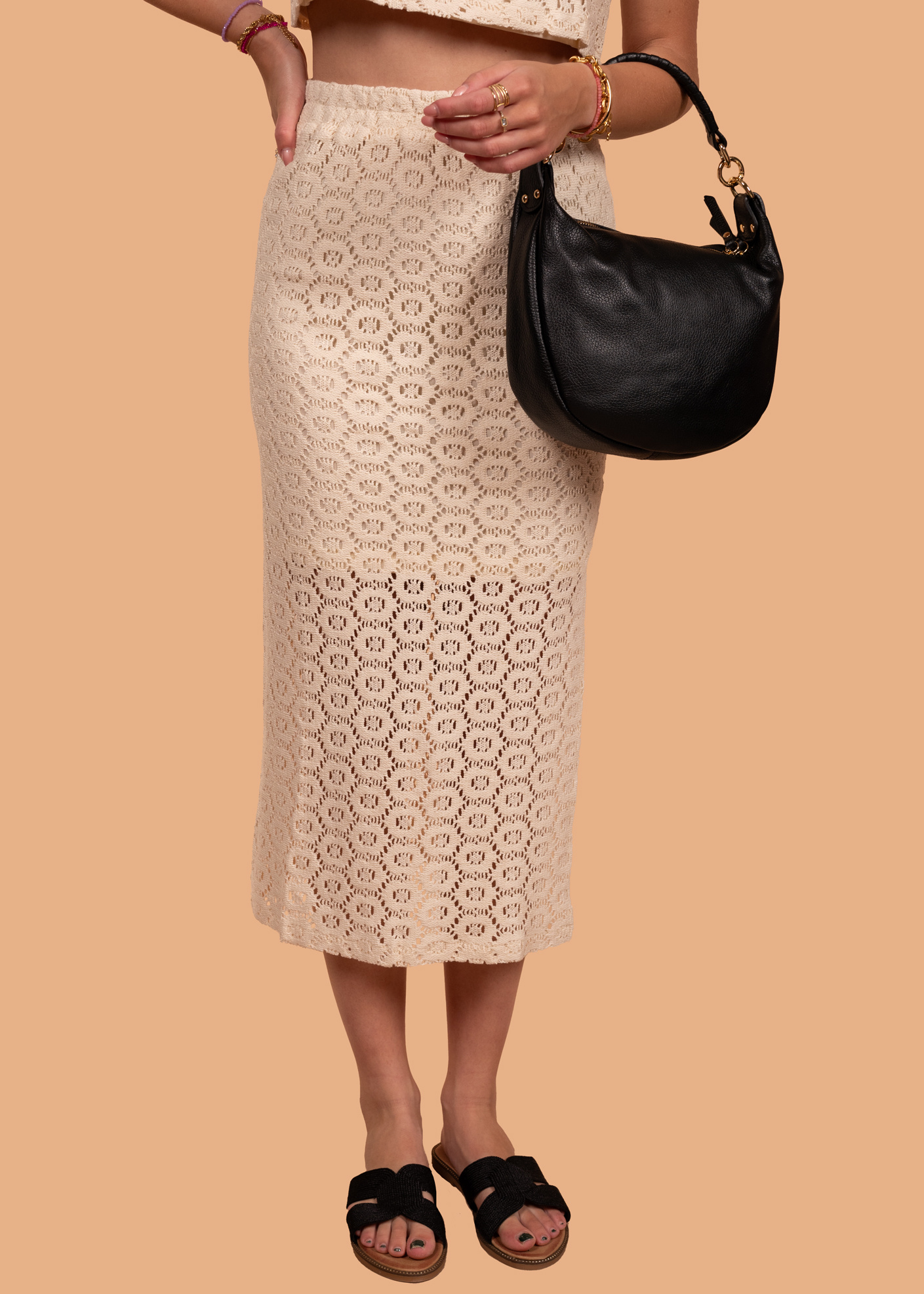 Deze prachtige gehaakte rok is een echte eyecatcher! De fijne crochet stof geeft je instant zomer vibes en de voering zorgt ervoor dat je niet bang hoeft te zijn om te veel te laten zien.