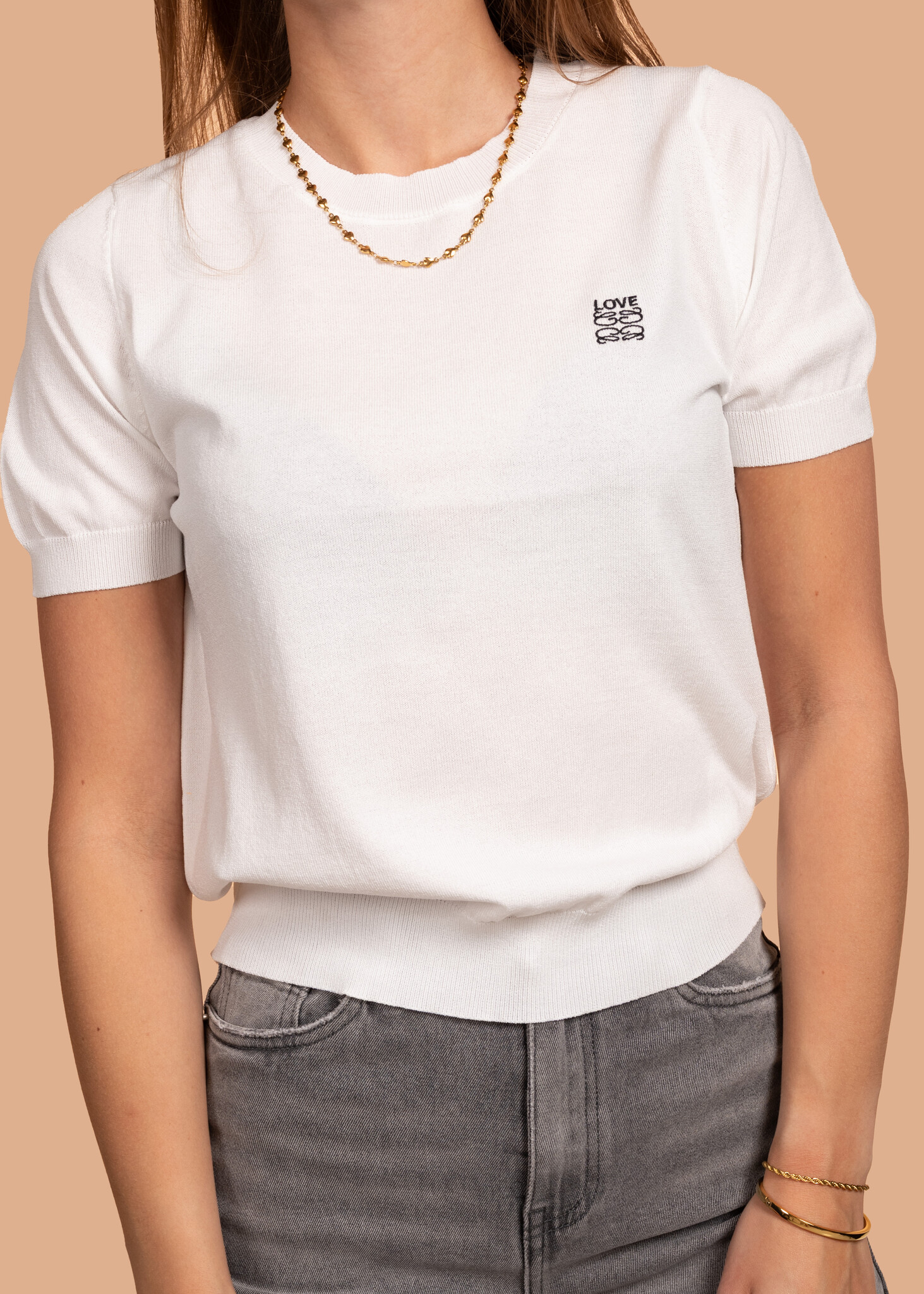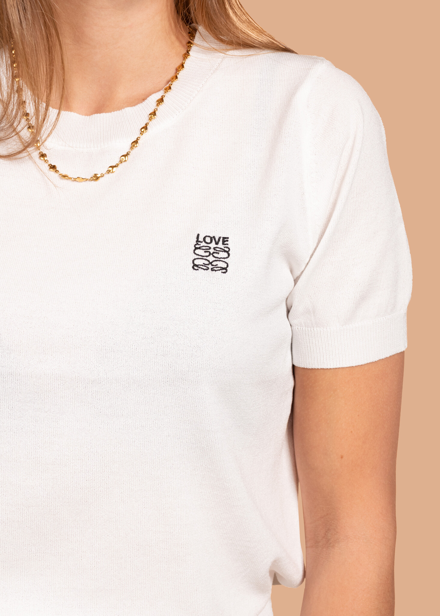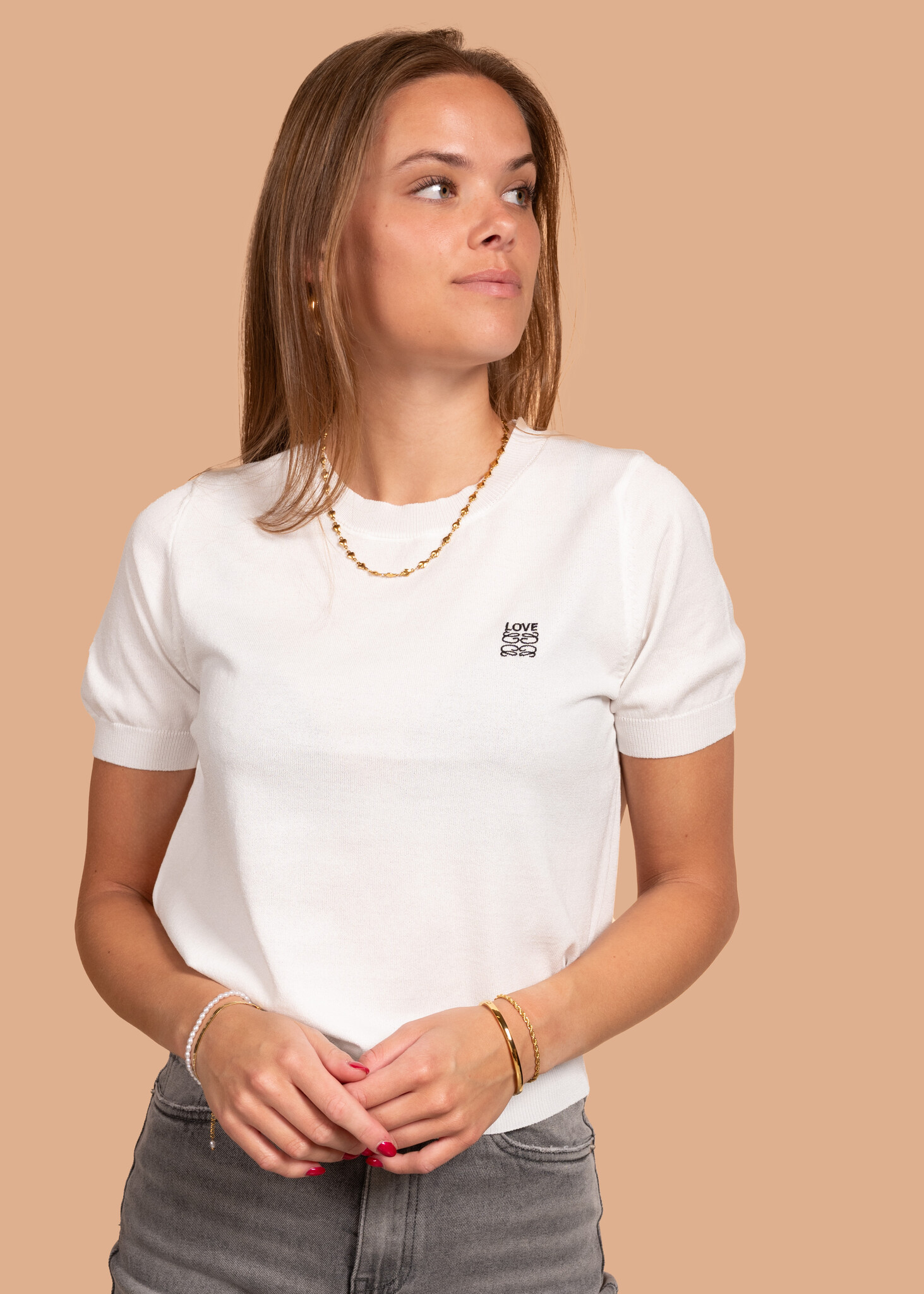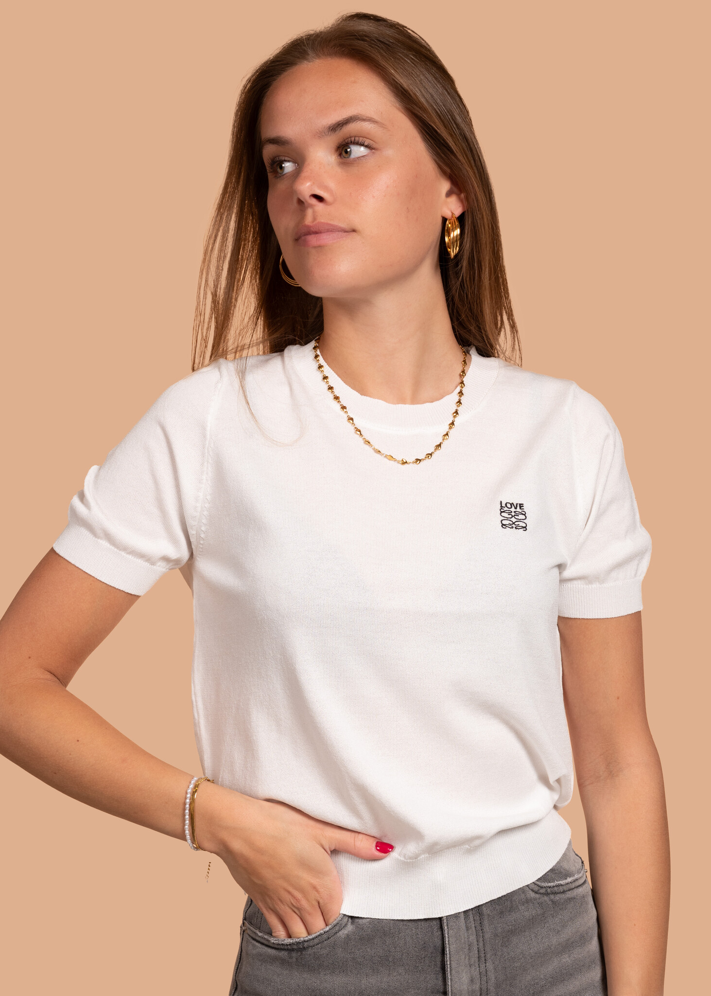 Hey girl! Op zoek naar een nieuwe favoriet voor je garderobe? Check dan dit superleuke, dunne t-shirt! Dit witte shirtje is perfect voor de zonnige dagen die eraan komen. Het is gemaakt van een heerlijk zachte stof die je de hele dag comfortabel houdt. En die subtiele "LOVE" tekst? Die maakt 'm helemaal af!