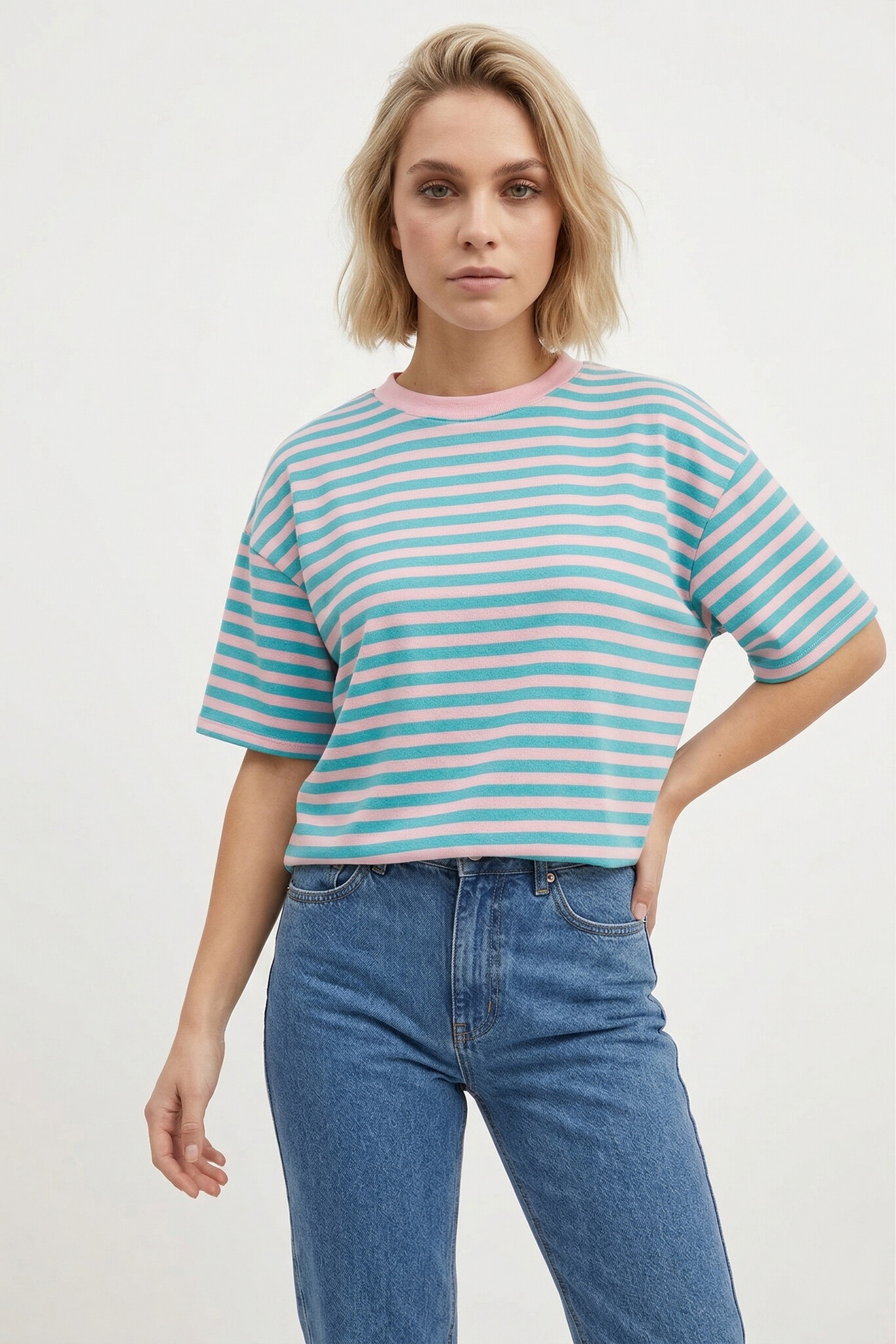 Aan verlanglijst toevoegenGestreept shirt korte mouw mint roze✨ 4.8 / 5 score via Google Reviews 27,99 Incl. btw Op voorraad In winkelmandjeInloggen voor wishlistVoor 15:00 besteldvandaag verzondenAchteraf betalenvia Klarna, binnen 14 dagenGratis verzendingvanaf €75Veilig betalenmet beveiligde SSL verbindingBeschrijvingDit gestreepte T-shirt in mint groen en roze is een must-have! De oversized fit en korte mouwen maken 'm perfect voor een casual look. Gemaakt van 90% viscose en 10% elastaan, dus super comfy!