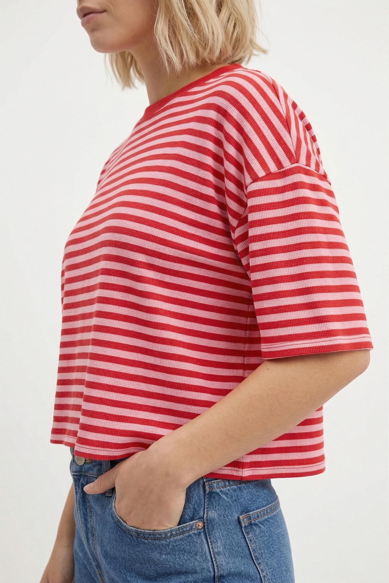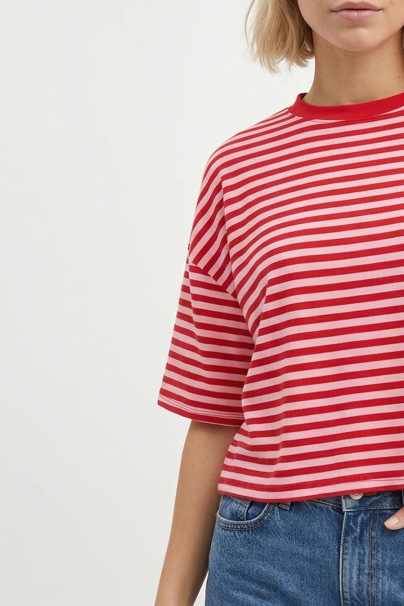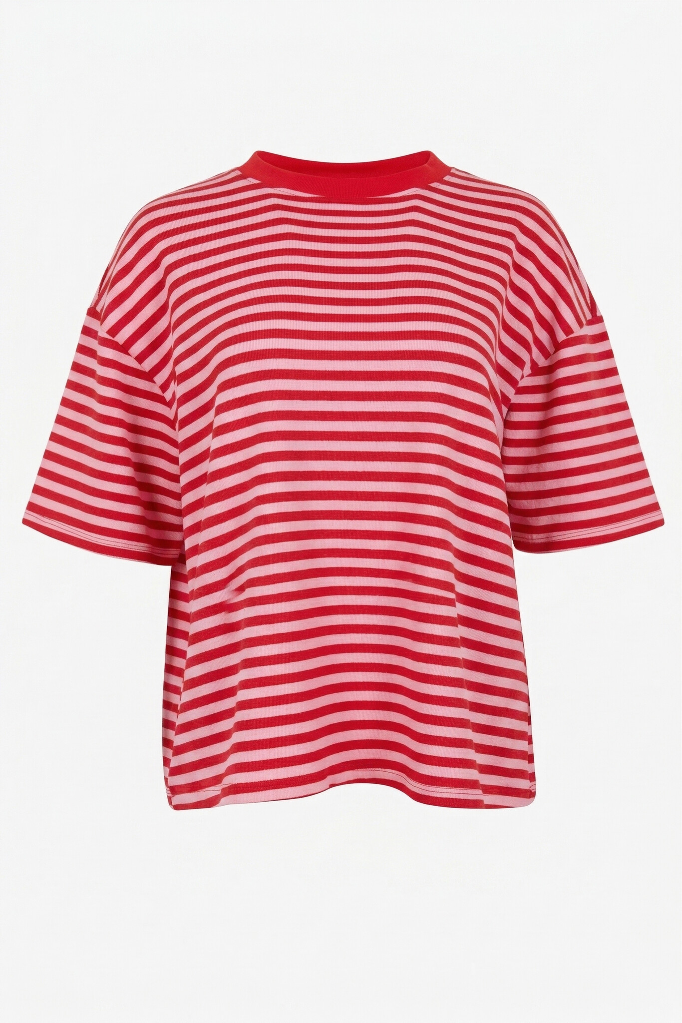 Aan verlanglijst toevoegenGestreept shirt korte mouw rood roze✨ 4.8 / 5 score via Google Reviews 27,99 Incl. btw Op voorraad In winkelmandjeInloggen voor wishlistVoor 15:00 besteldvandaag verzondenAchteraf betalenvia Klarna, binnen 14 dagenGratis verzendingvanaf €75Veilig betalenmet beveiligde SSL verbindingBeschrijvingDeze oversized gestreepte T-shirt in rood en roze is jouw nieuwe favo! Gemaakt van 90% viscose en 10% elastaan, draagt 'ie heerlijk. Perfect voor een chill dagje of een avondje uit. Combineer 'm met je lievelingsjeans!