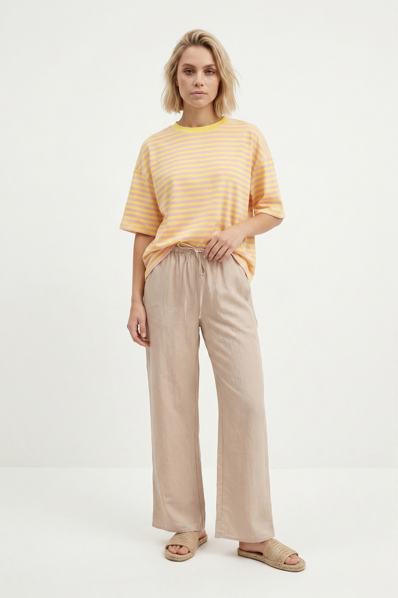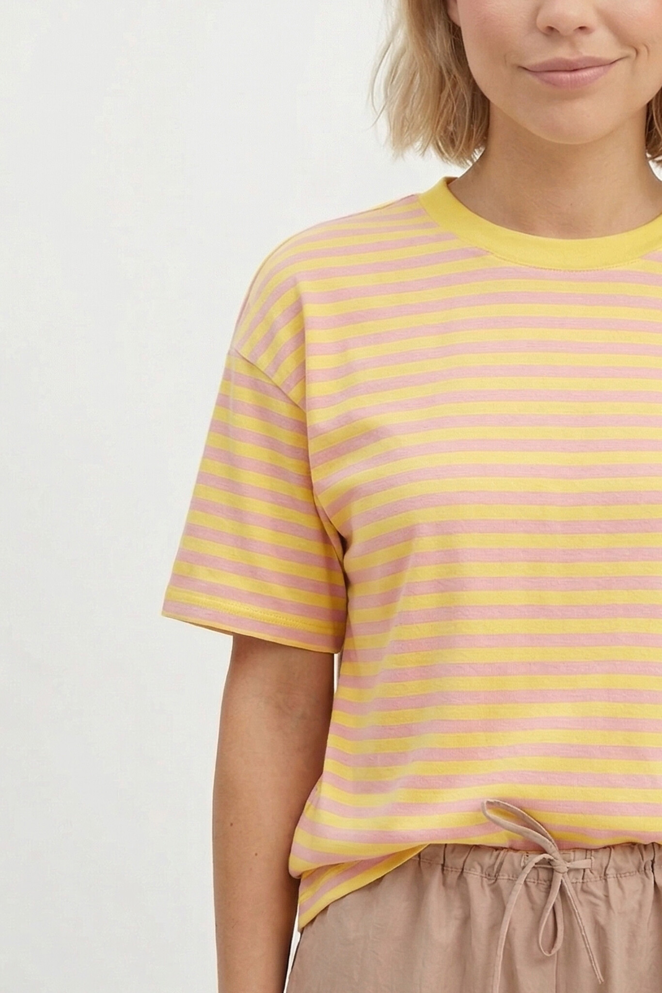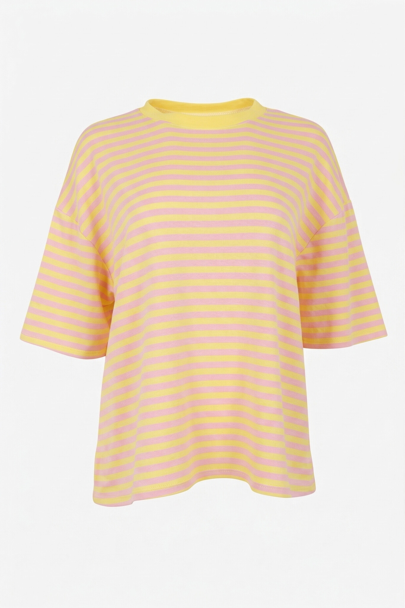 Aan verlanglijst toevoegenGestreept shirt korte mouw roze geel✨ 4.8 / 5 score via Google Reviews 27,99 Incl. btw Op voorraad In winkelmandjeInloggen voor wishlistVoor 15:00 besteldvandaag verzondenAchteraf betalenvia Klarna, binnen 14 dagenGratis verzendingvanaf €75Veilig betalenmet beveiligde SSL verbindingBeschrijvingDit gestreepte T-shirt in roze en geel is een echte must-have! De oversized fit zorgt voor een relaxte look. Gemaakt van 90% viscose en 10% elastaan, draagt dit shirt heerlijk. Perfect voor een dagje chillen!