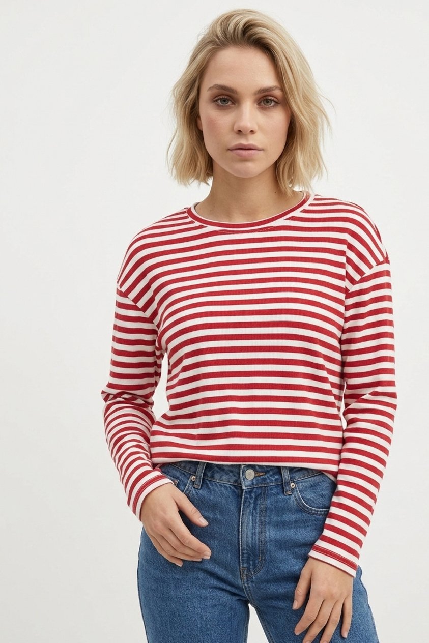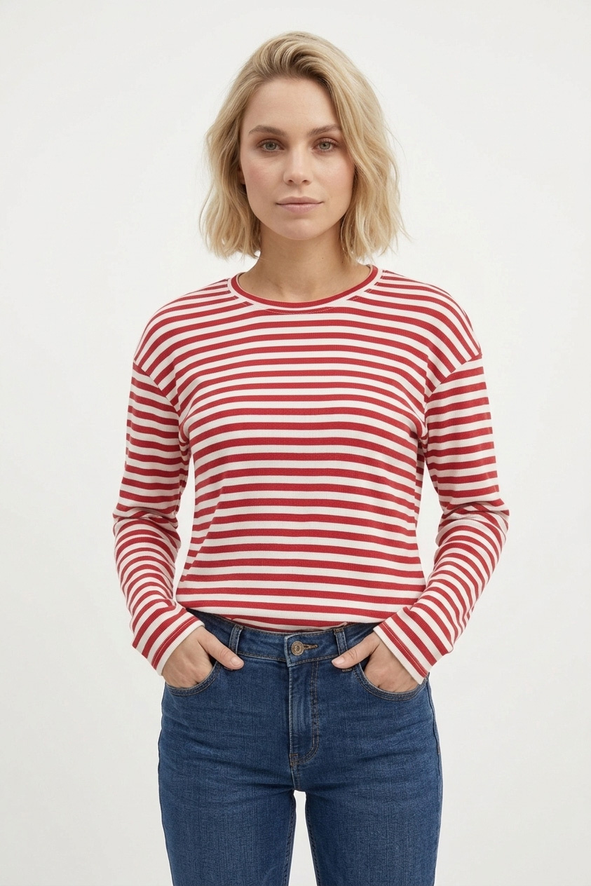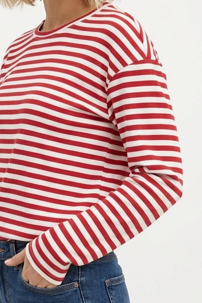 Combineer dit rood shirt strepen met een stoere jeans en sneakers voor een relaxte look. Of draag het met een rok en laarsjes voor een wat meer geklede outfit. Je kunt er ook een blazer overheen gooien voor een sophisticated touch. De mogelijkheden zijn eindeloos!