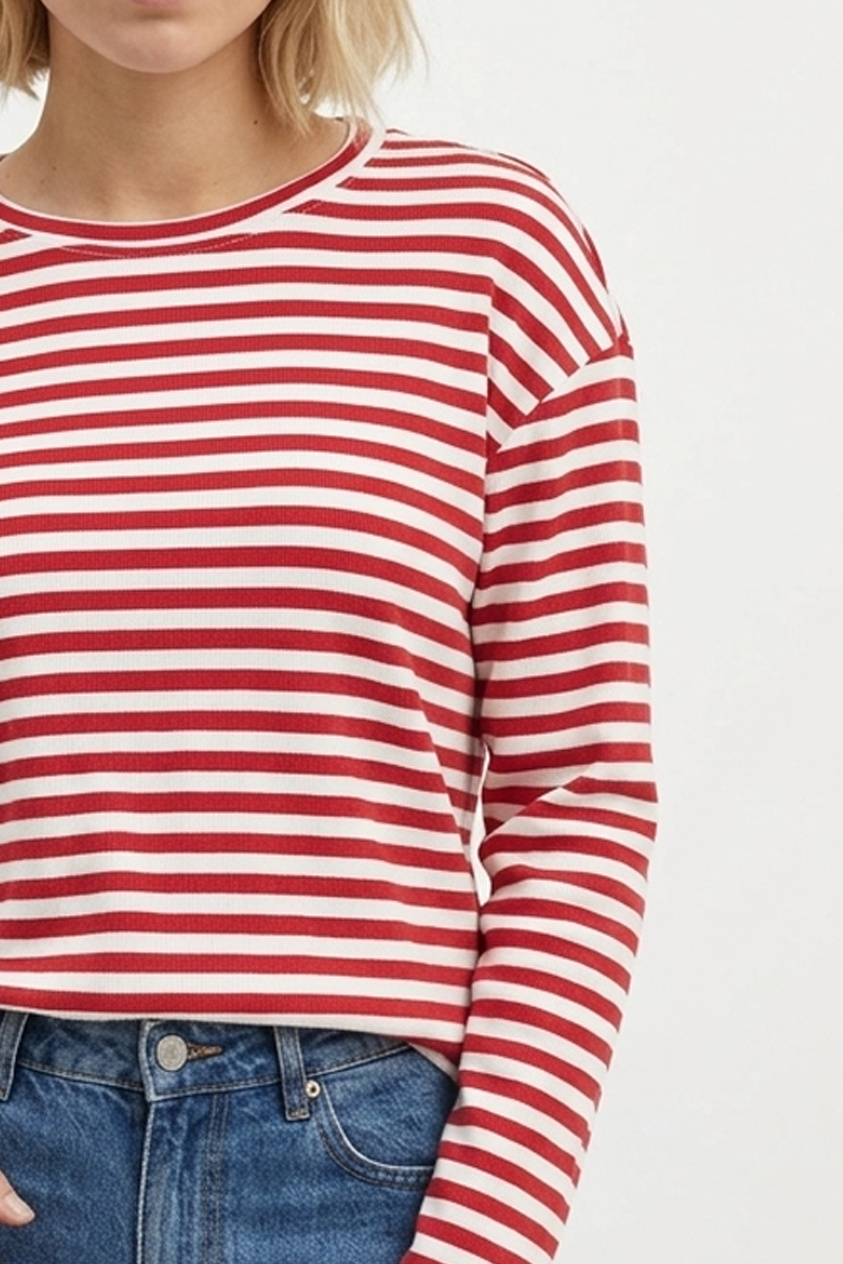 Gestreept shirt rood beige Nicky lange mouw