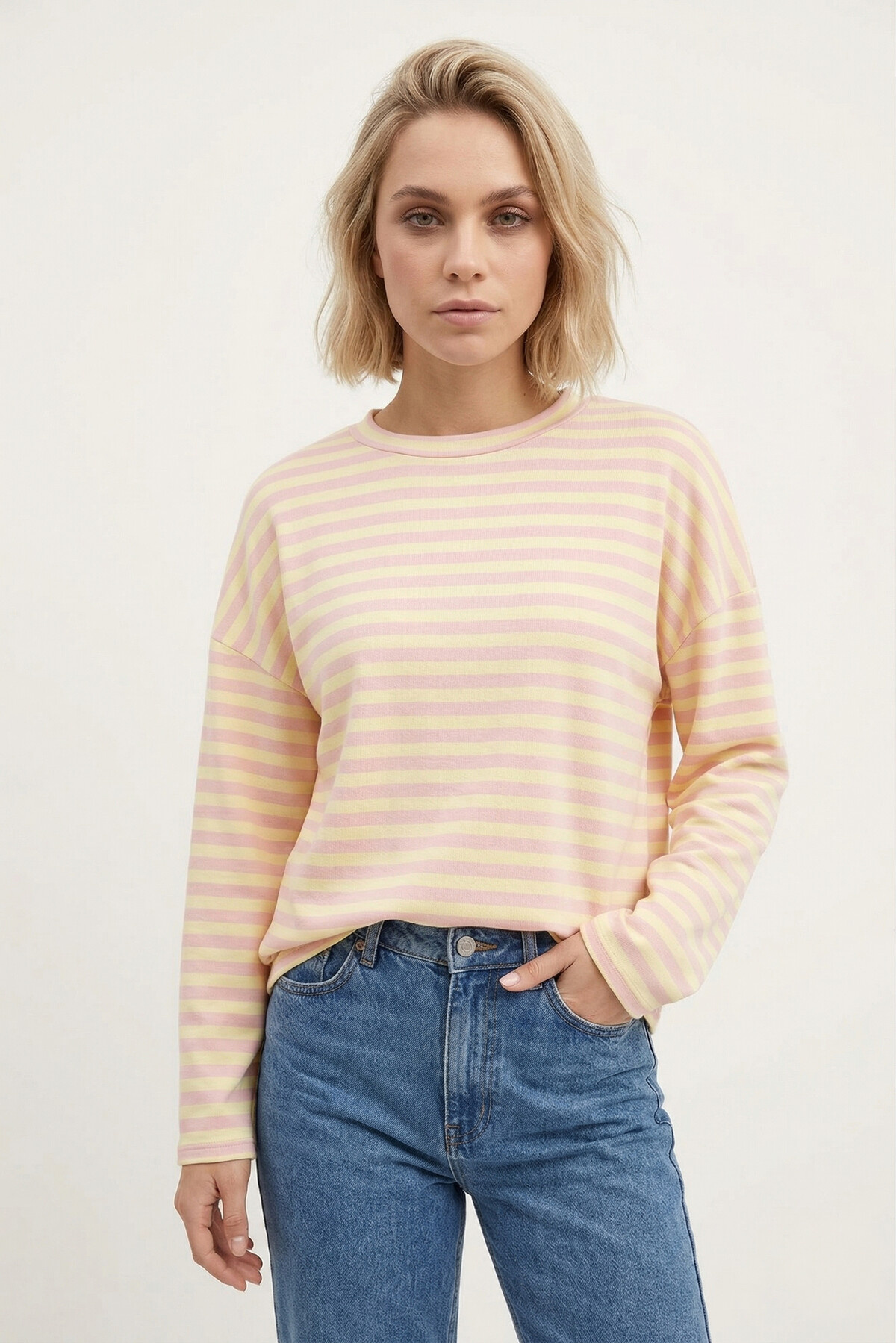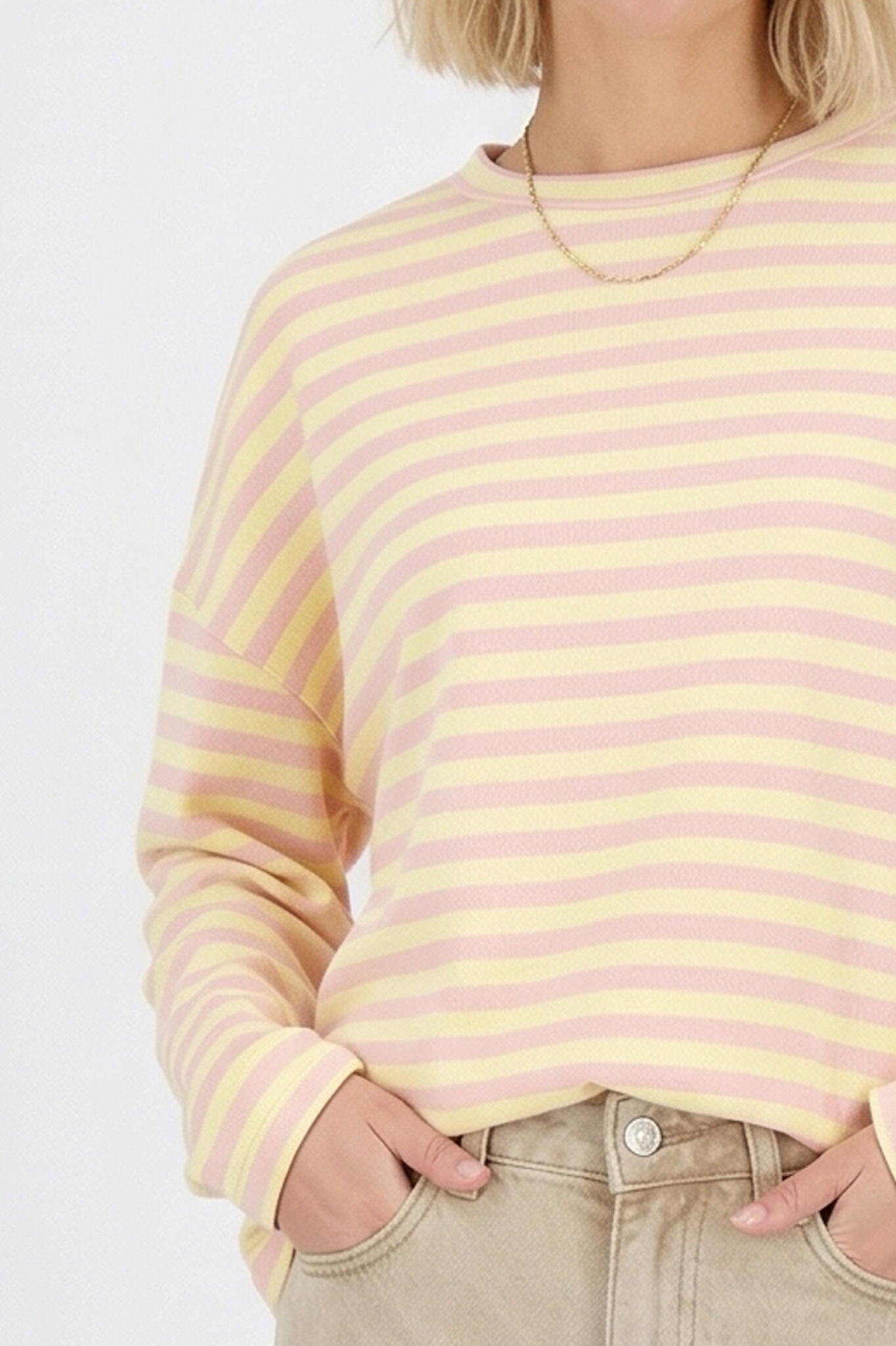 Gestreept shirt roze met geel