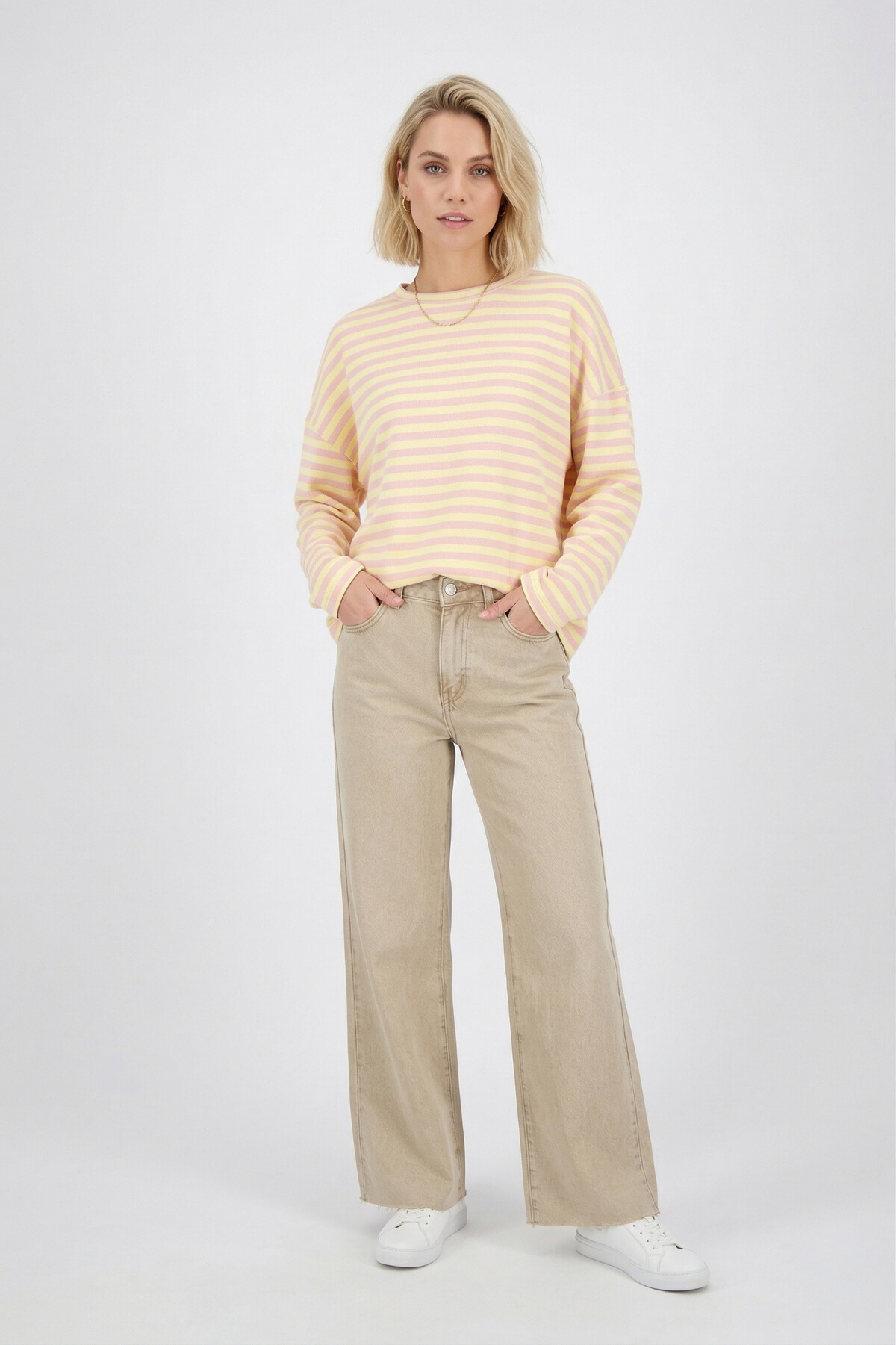 Dit shirt is echt een musthave voor jouw garderobe! De vrolijke combinatie van roze en geel geeft je meteen een zomers gevoel, zelfs op de wat minder zonnige dagen. Het is een echte eyecatcher die je outfit direct een boost geeft. De gestreepte print is tijdloos en super makkelijk te combineren.