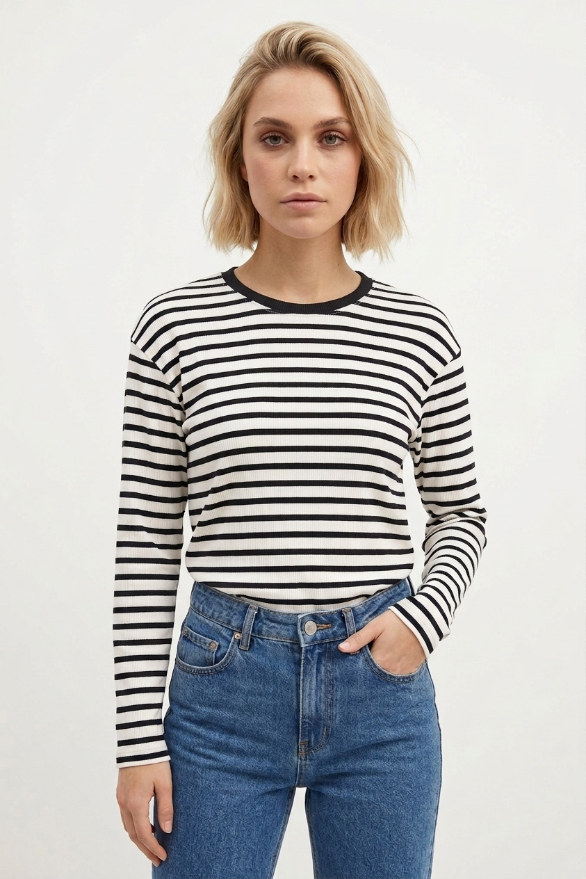 Dit zwarte shirt met strepen is eindeloos te combineren. Draag 'm bijvoorbeeld met een stoere jeans en sneakers voor een casual look. Of ga voor een meer geklede look met een zwarte pantalon en hakken. Een leuke ketting of een paar oorbellen maken je outfit helemaal af!