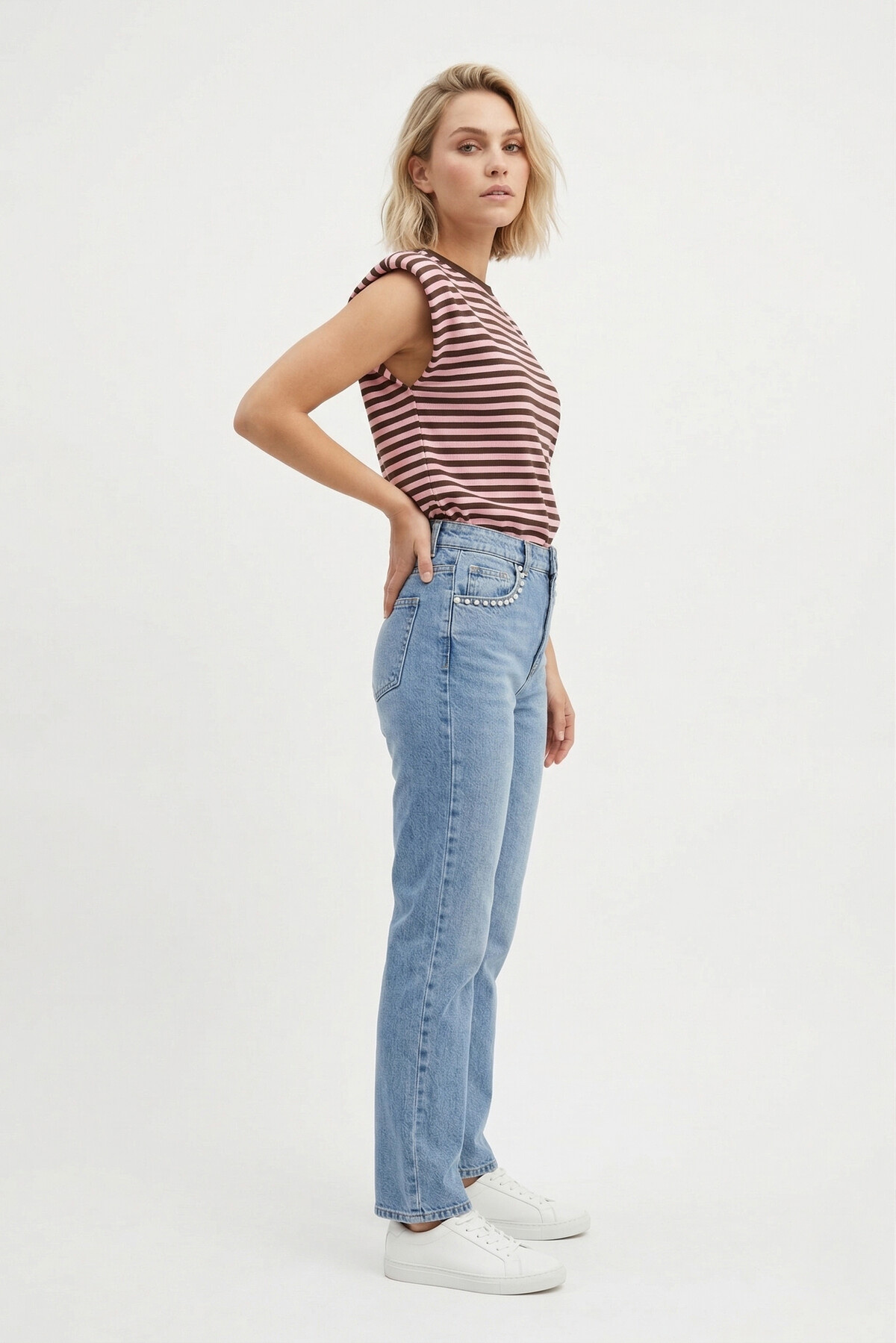Draag de top op een high waisted jeans met toffe details, zoals strass steentjes of een destroyed effect. Maak de look af met een paar chunky sneakers en je bent ready to go! Of ga voor een meer bohemian look door de top te combineren met een lange rok, sandalen en een leuke hoed. De mogelijkheden zijn eindeloos!