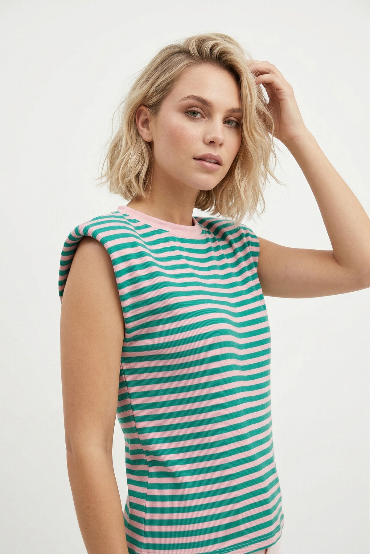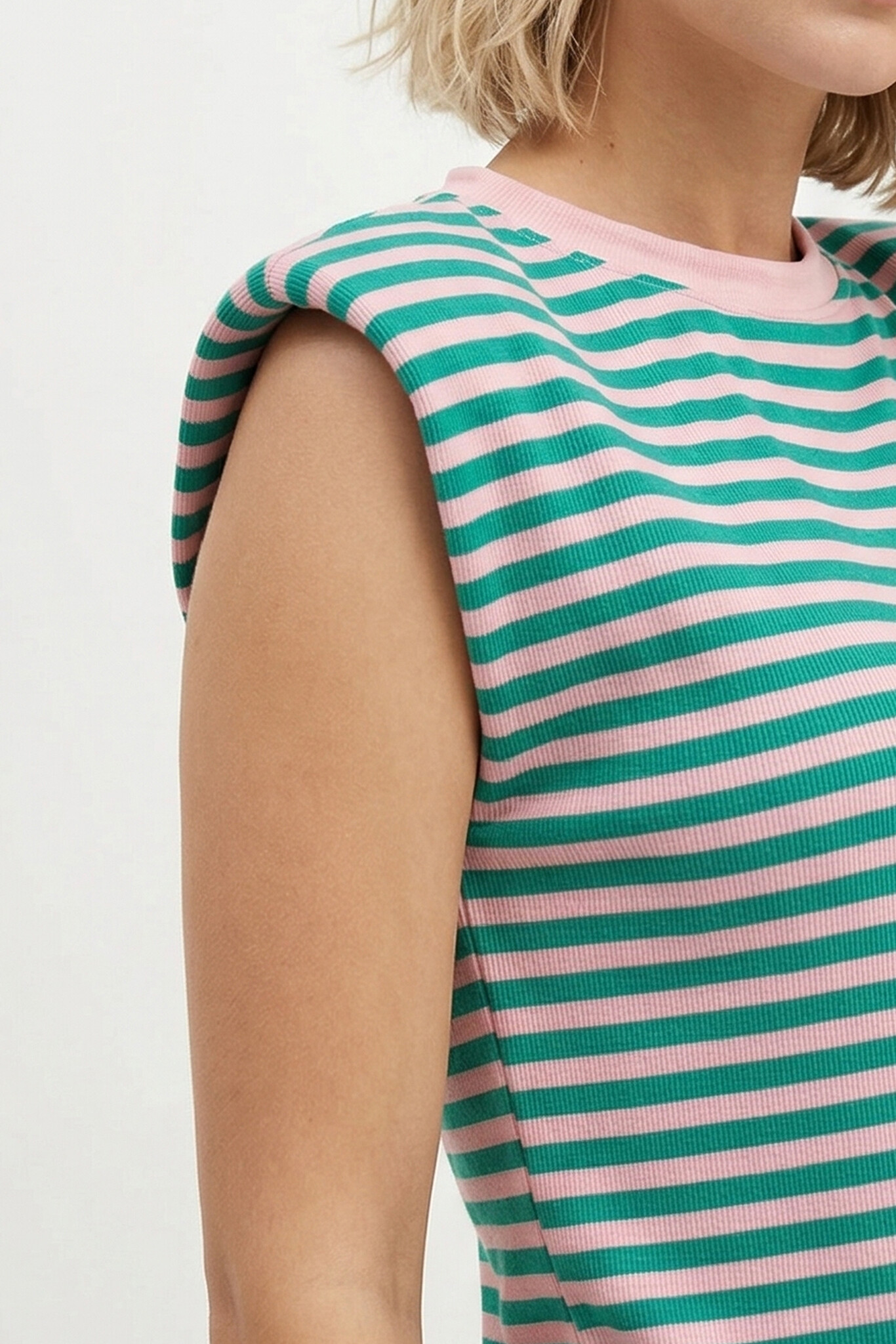 Gestreepte top schoudervulling groen roze