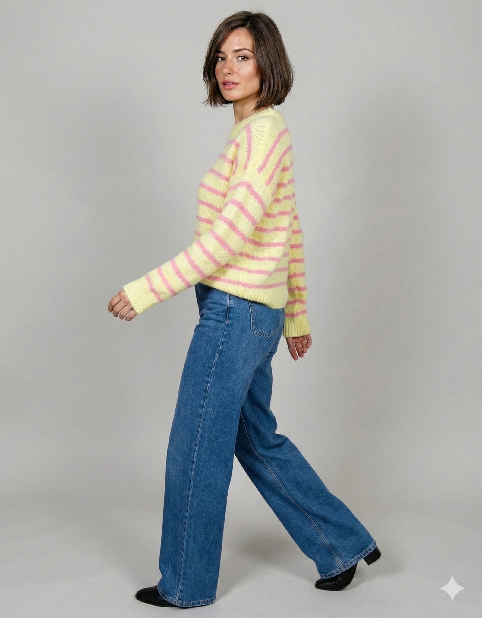 Gestreepte trui geel/roze