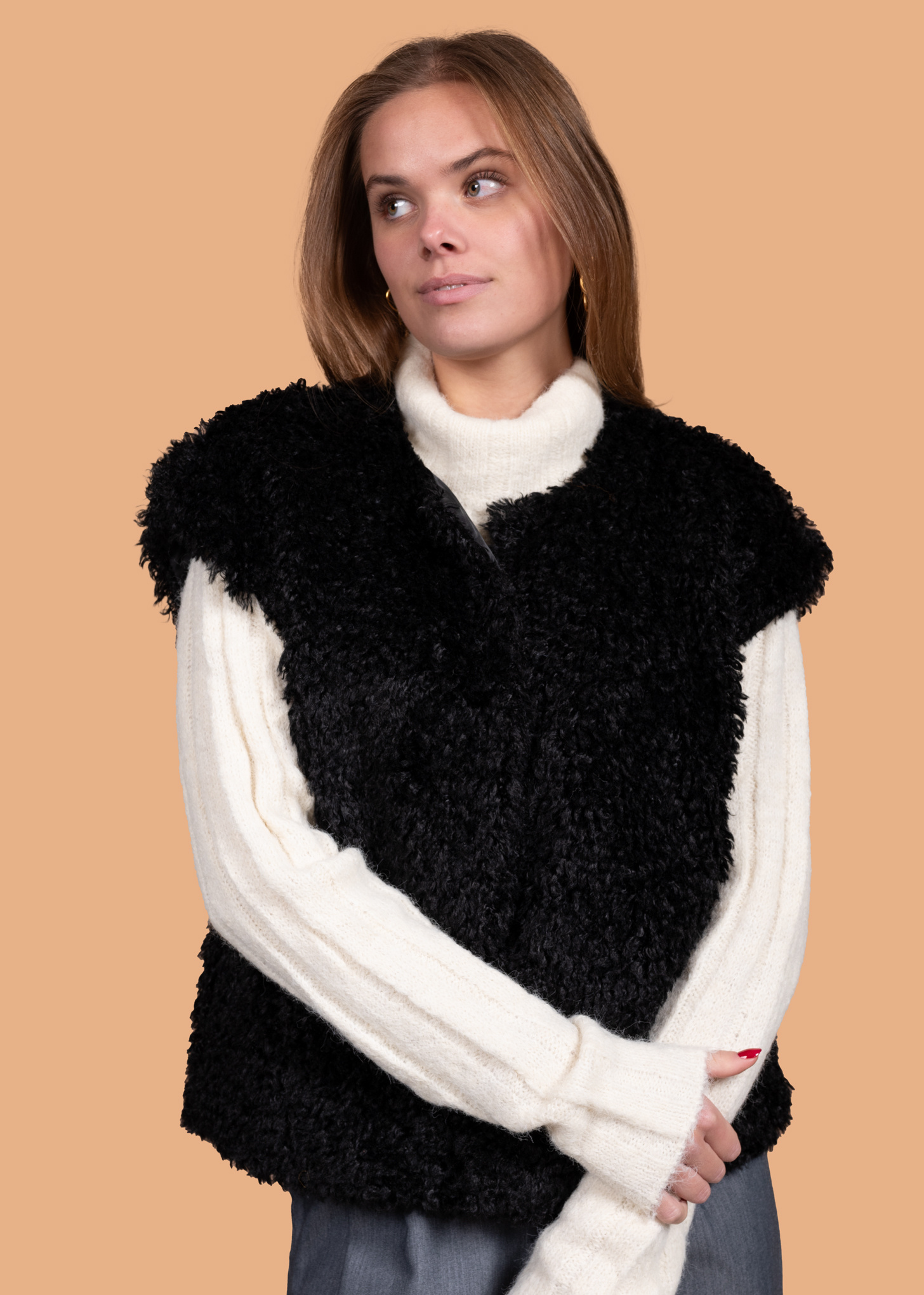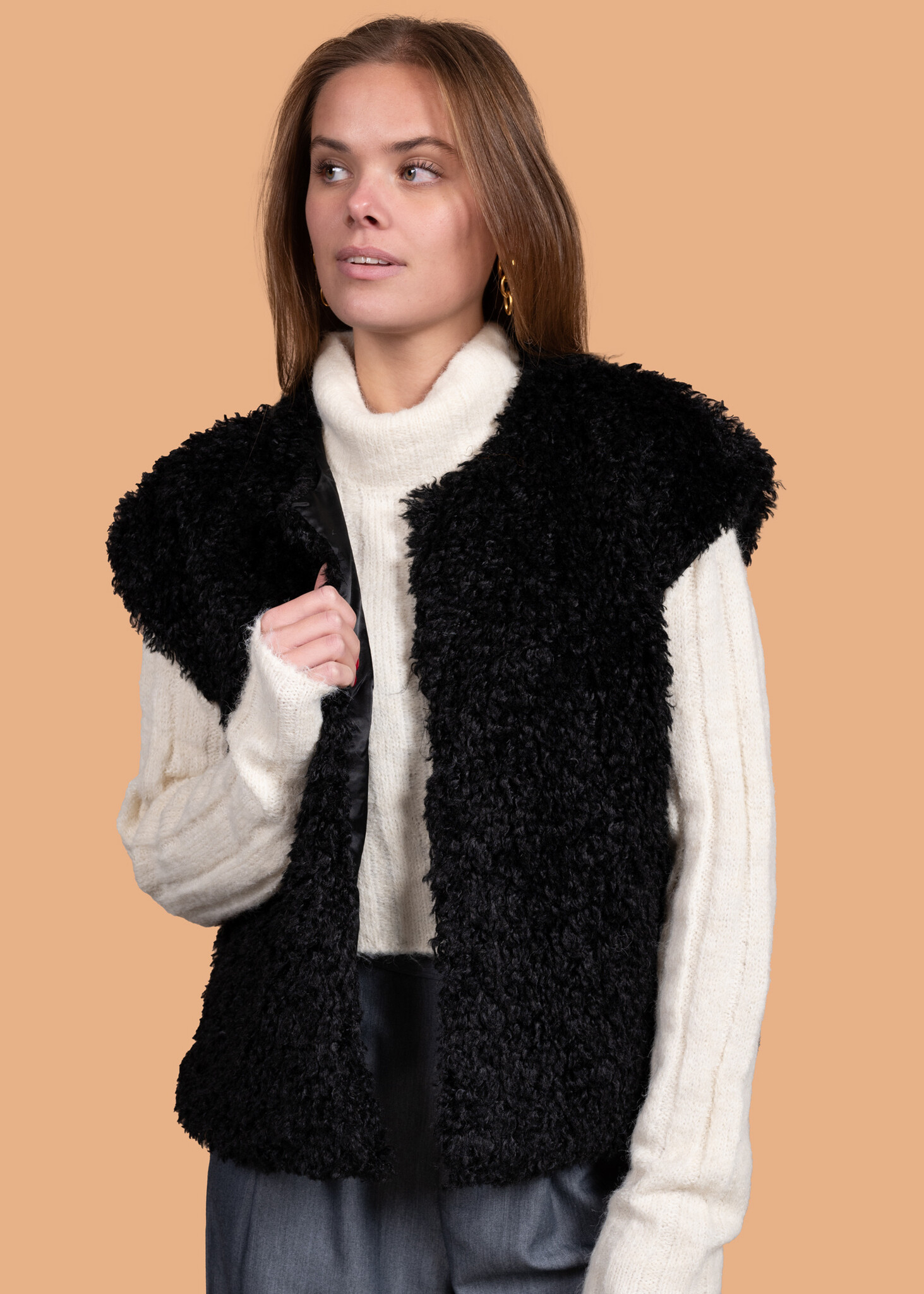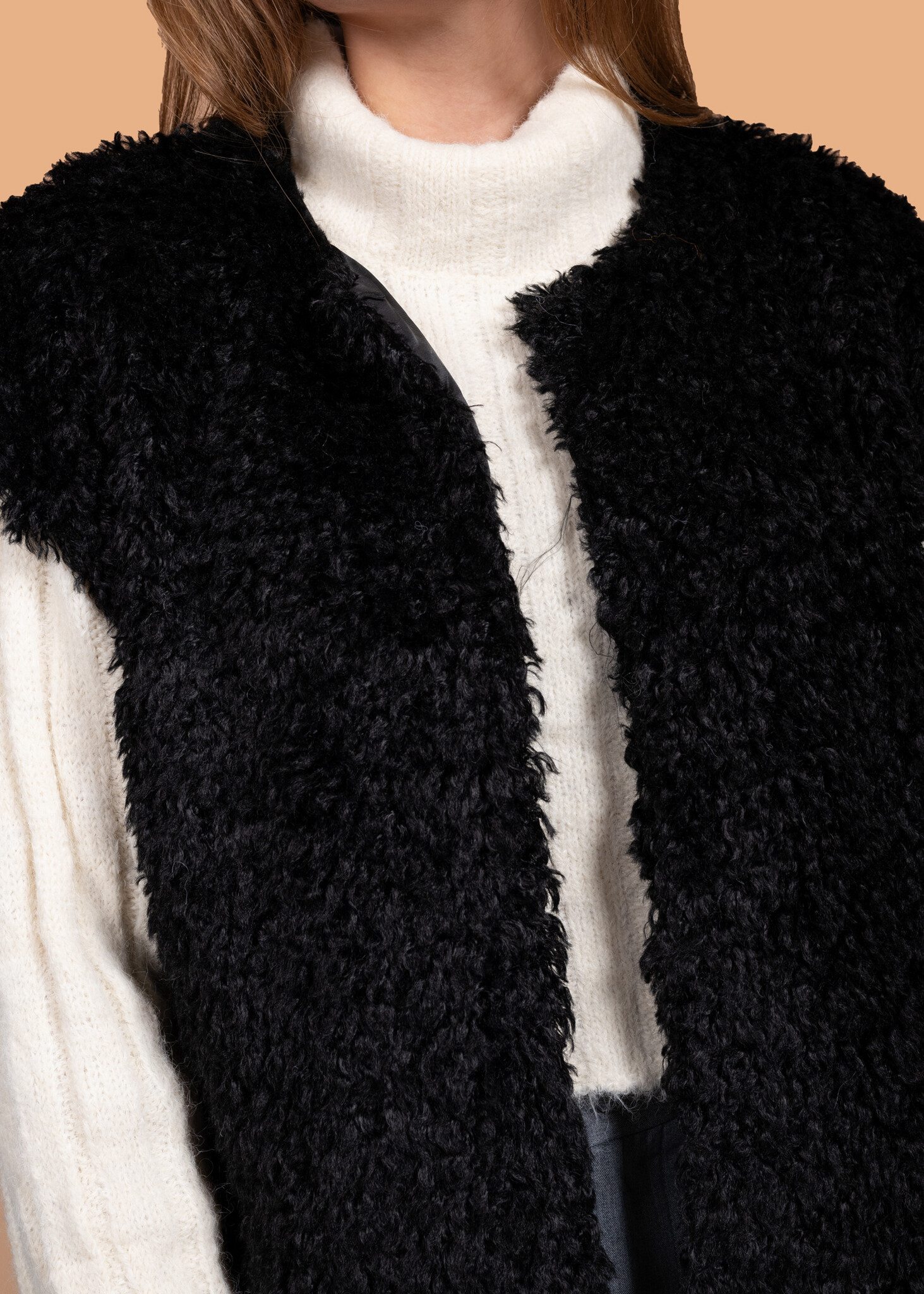 Of je nu gaat voor een casual look met een jeans en sweater, of juist kiest voor een chique touch met een blouse en pantalon, deze zwarte teddy gilet maakt elke outfit af.