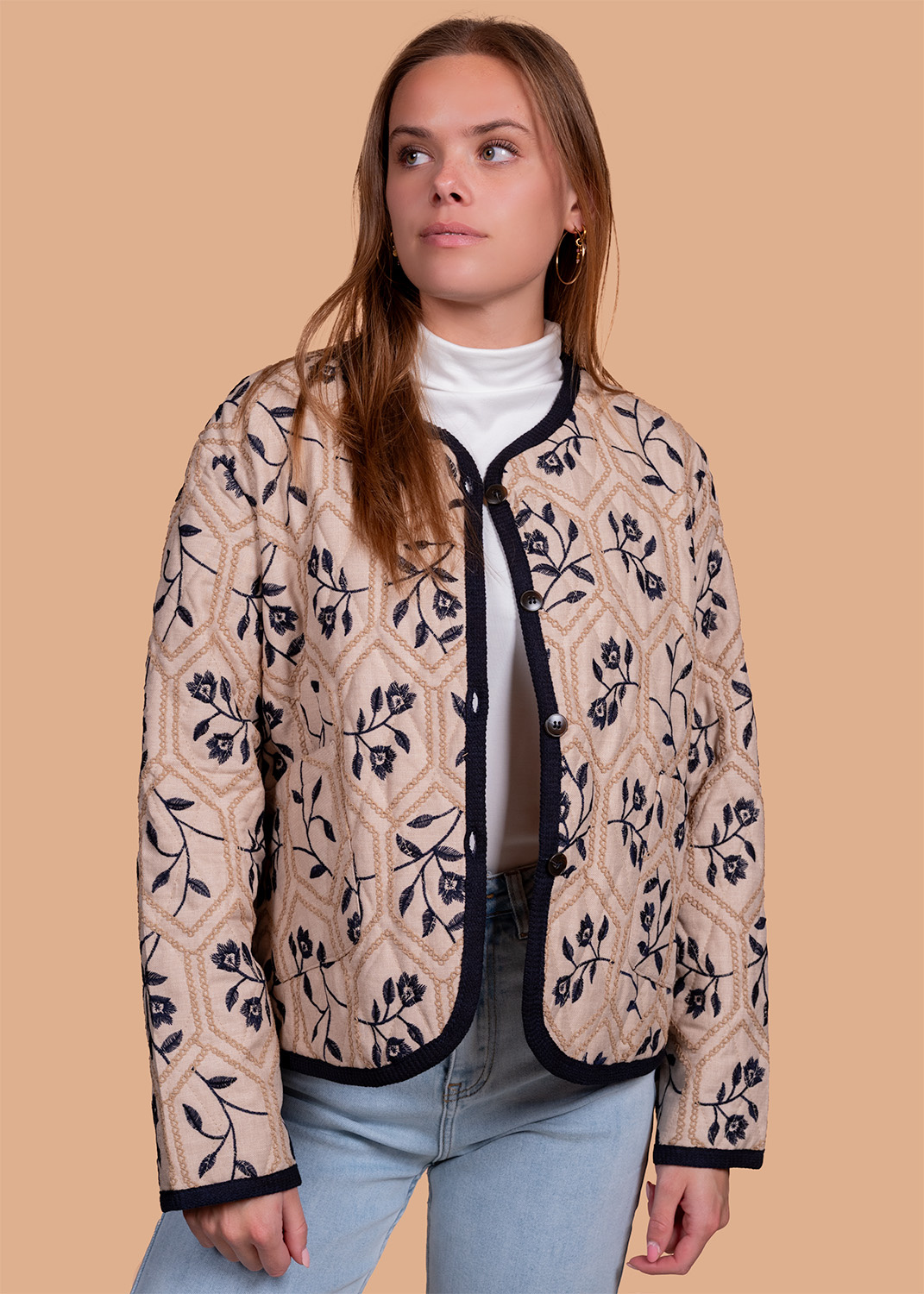Aan verlanglijst toevoegenGewatteerde jacket met blauwe bloemen✨ 4.8 / 5 score via Google Reviews 64,99 Incl. btw Op voorraad Maat S/M M/LSize: *S/MM/LIn winkelmandjeInloggen voor wishlistVoor 15:00 besteldvandaag verzondenAchteraf betalenvia Klarna, binnen 14 dagenGratis verzendingvanaf €75Veilig betalenmet beveiligde SSL verbindingBeschrijvingDeze beige jacket met blauwe bloemen is echt een must-have! De gewatteerde stof houdt je lekker warm en de bloemenprint geeft een speelse touch. Perfect voor een dagje shoppen of een avondje uit!
