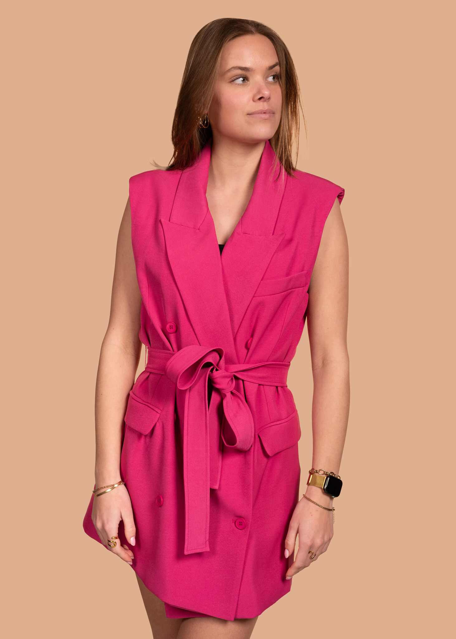 Deze veelzijdige jurk is perfect voor zowel een dagje shoppen met vriendinnen als een avondje uit. De gilet jurk geeft je outfit direct een trendy touch, terwijl de felle fuchsia kleur zorgt voor een flinke dosis power.