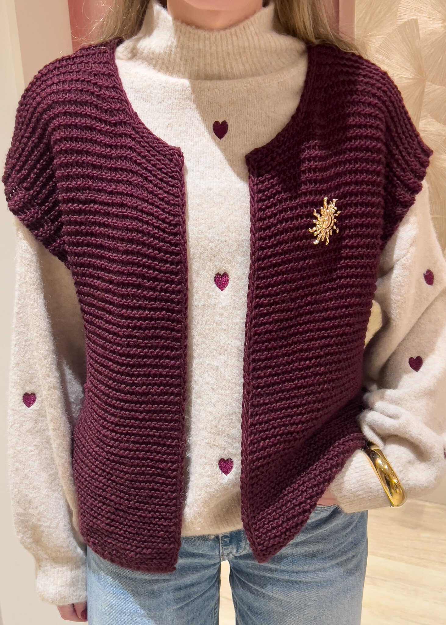 Aan verlanglijst toevoegenGilet met broche bordeaux✨ 4.8 / 5 score via Google Reviews 39,99 Incl. btw Op voorraad In winkelmandjeInloggen voor wishlistVoor 15:00 besteldvandaag verzondenAchteraf betalenvia Klarna, binnen 14 dagenGratis verzendingvanaf €75Veilig betalenmet beveiligde SSL verbindingBeschrijvingDit gebreide gilet in bordeaux is een must-have voor jouw garderobe! Het gilet is afgewerkt met een gouden broche voor een extra touch. Super leuk te combineren met een blouse of top. Steel de show!