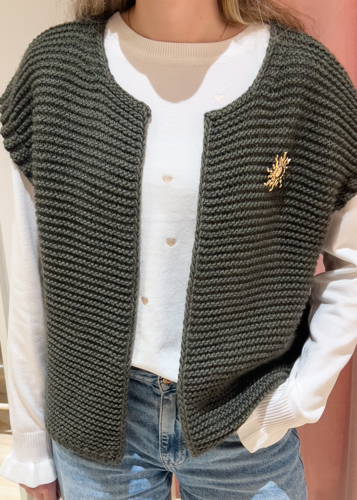 Aan verlanglijst toevoegenGilet met broche groen✨ 4.8 / 5 score via Google Reviews 39,99 Incl. btw Op voorraad In winkelmandjeInloggen voor wishlistVoor 15:00 besteldvandaag verzondenAchteraf betalenvia Klarna, binnen 14 dagenGratis verzendingvanaf €75Veilig betalenmet beveiligde SSL verbindingBeschrijvingDeze groene gilet met broche is een must-have voor jouw garderobe! Het gebreide materiaal geeft een comfy gevoel. De gouden broche maakt 'm extra speciaal. Perfect voor een dagje shoppen of een avondje uit. Combineer 'm met je favo jeans!