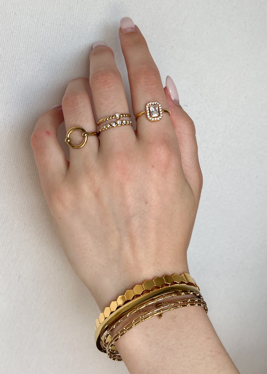 Combineer de ring met andere gouden sieraden voor een trendy look, of draag hem juist solo voor een subtiele touch.