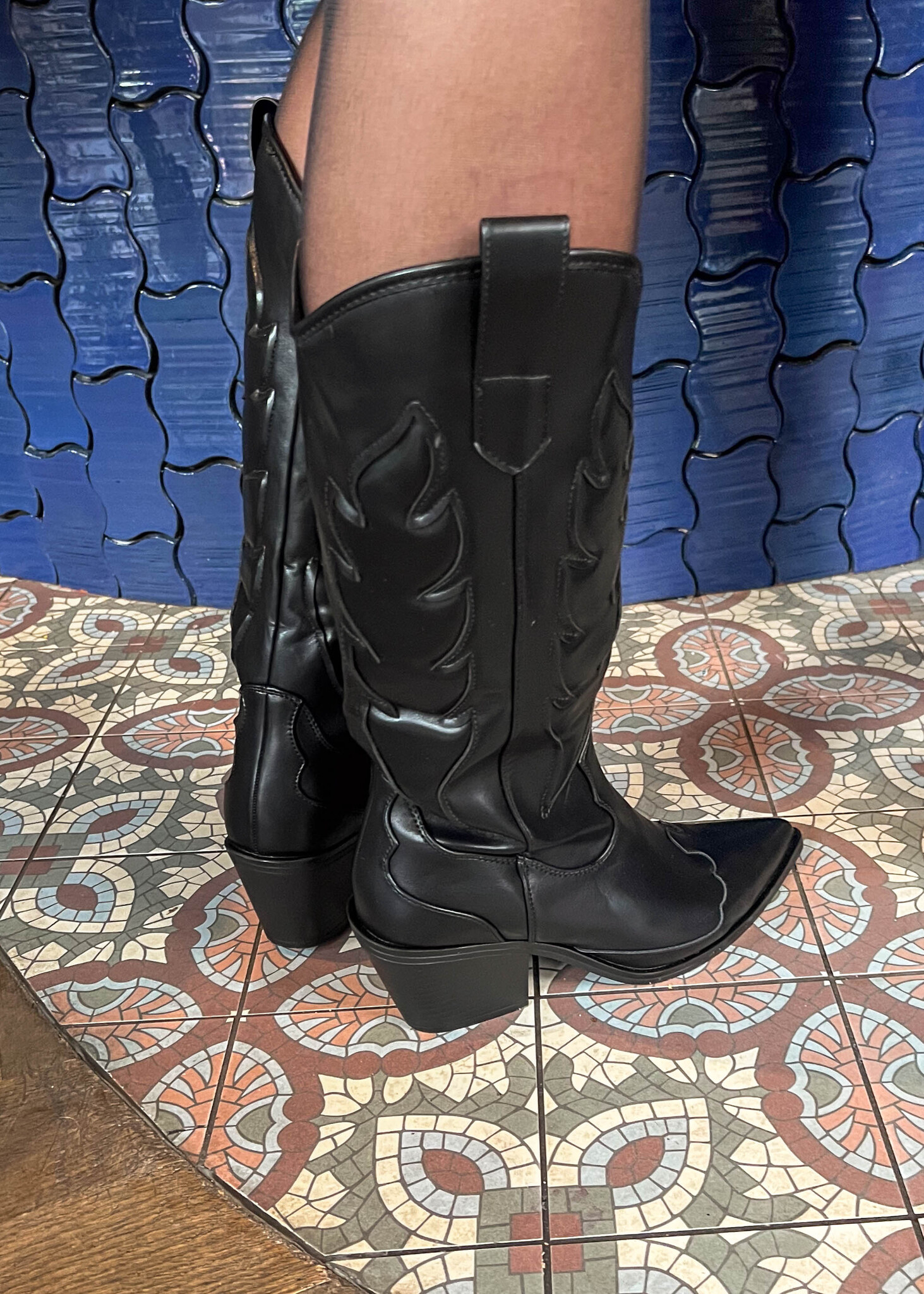 Deze zwarte cowboyboots zijn perfect voor elke gelegenheid. Combineer ze met een flowy jurk en een stoer leren jack voor een festival-ready look, of draag ze onder een mom jeans en een oversized trui voor een casual-chic vibe tijdens een citytrip.