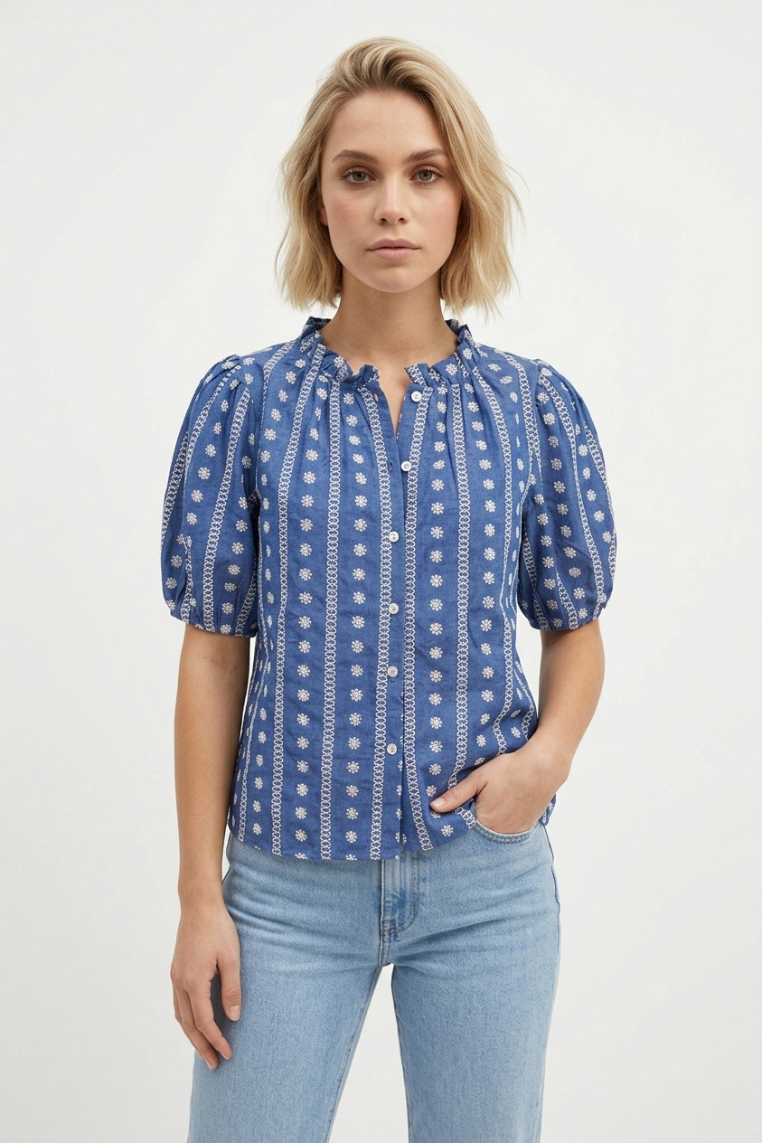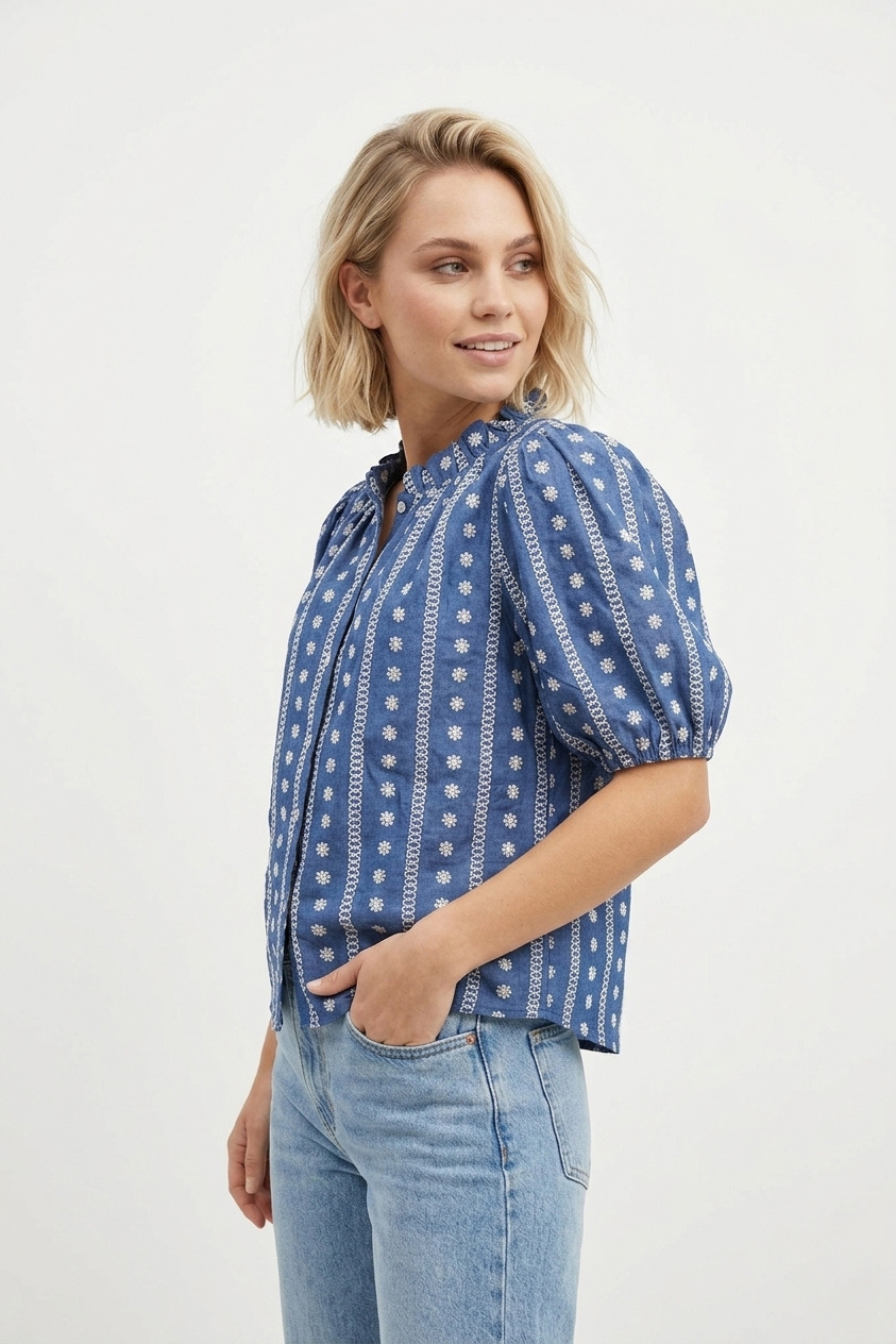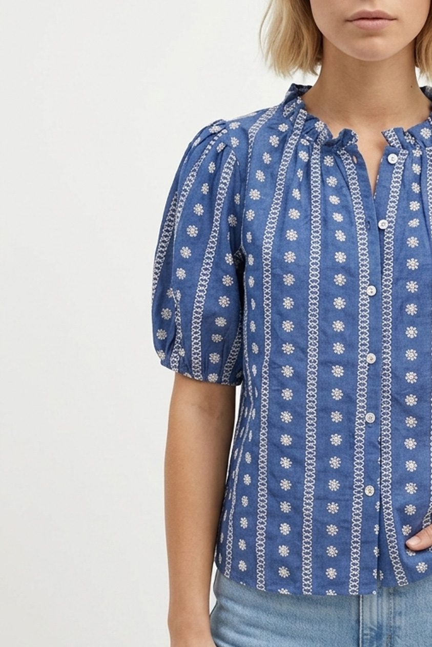 Deze blauwe jeans blouse met bloemetjes is een echte musthave! Gemaakt van 100% katoen, dus lekker luchtig. Perfect voor een dagje shoppen of een terrasje pakken met vriendinnen. Combineer 'm stoer of lief!