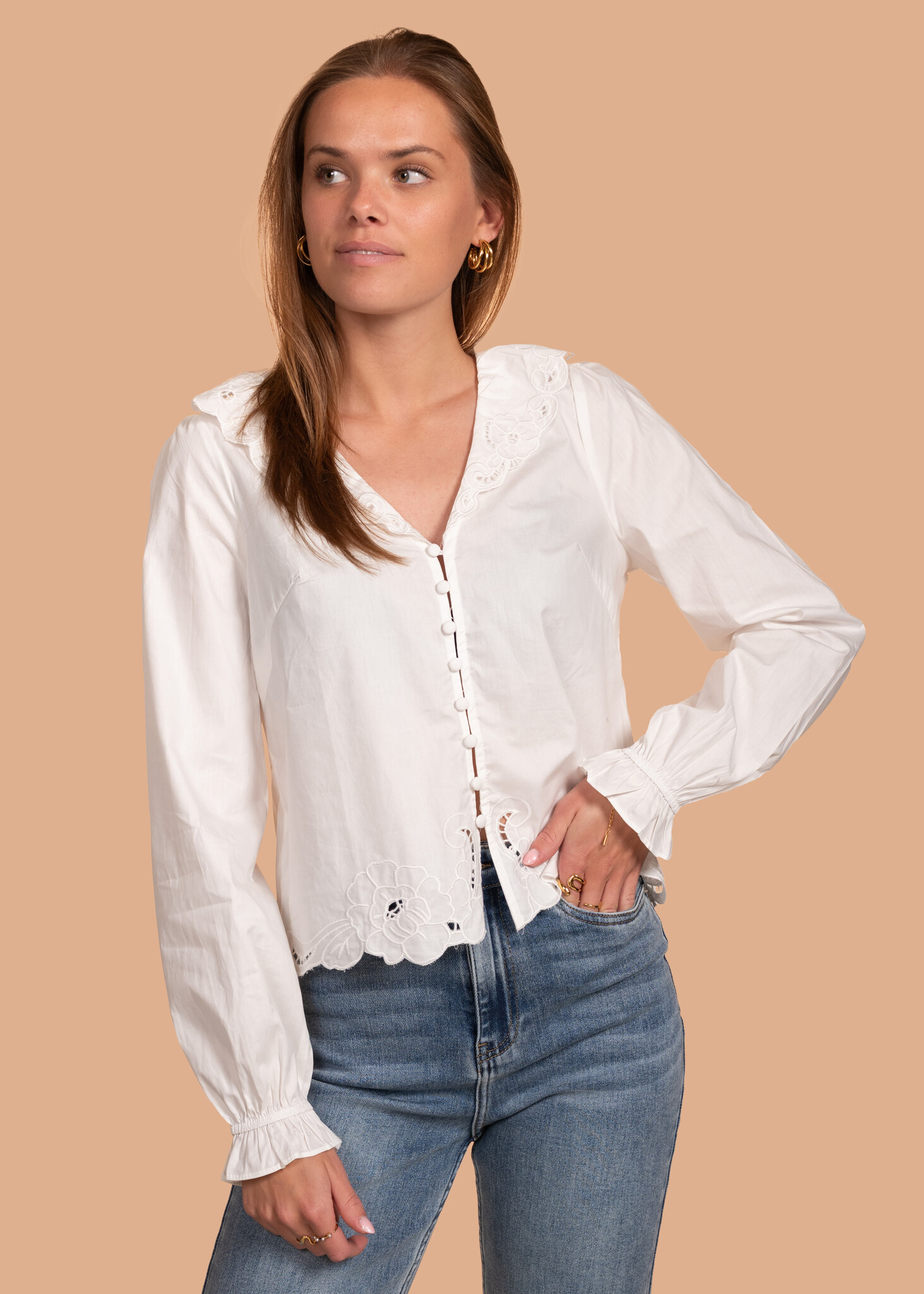 Aan verlanglijst toevoegenKatoenen blouse wit met borduursels✨ 4.8 / 5 score via Google Reviews 39,99 Incl. btw Op voorraad Maat S M L XLSize: *SMLXLIn winkelmandjeInloggen voor wishlistVoor 15:00 besteldvandaag verzondenAchteraf betalenvia Klarna, binnen 14 dagenGratis verzendingvanaf €75Veilig betalenmet beveiligde SSL verbindingBeschrijvingDeze witte katoenen blouse met borduursels is een echte must-have! De blouse heeft een mooie pasvorm en is gemaakt van heerlijk zacht katoen. Perfect voor een dagje shoppen of een avondje uit!