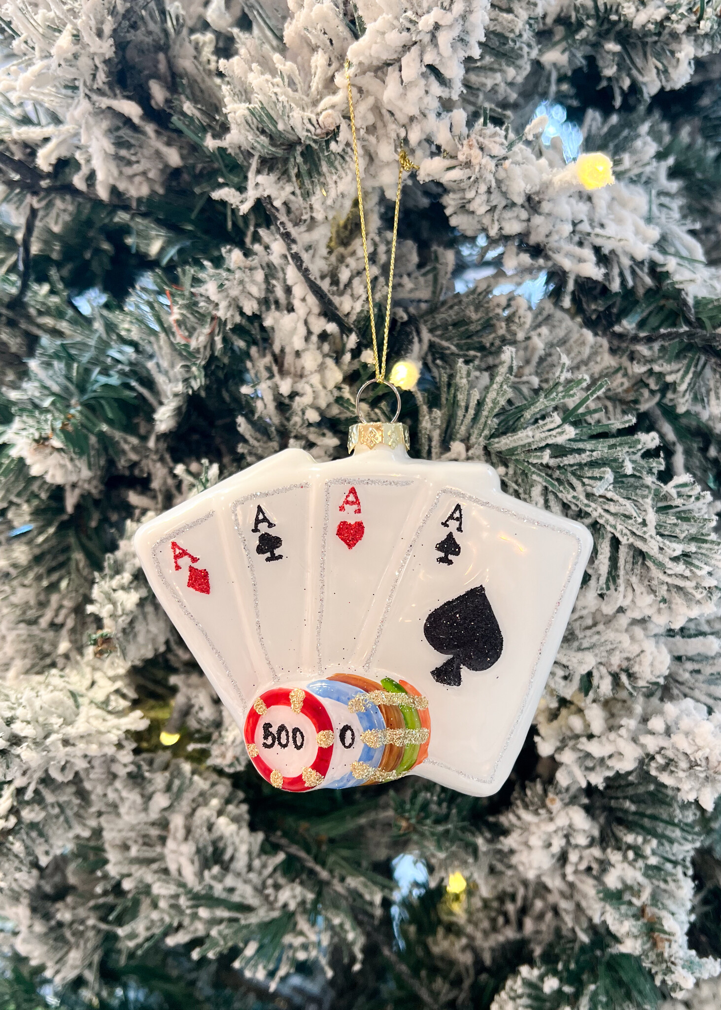 Aan verlanglijst toevoegenKerst ornament pokerspel✨ 4.8 / 5 score via Google Reviews 8,99 Incl. btw Op voorraad In winkelmandjeInloggen voor wishlistVoor 15:00 besteldvandaag verzondenAchteraf betalenvia Klarna, binnen 14 dagenGratis verzendingvanaf €75Veilig betalenmet beveiligde SSL verbindingBeschrijvingWaag een gokje met deze unieke kerstbal! Dit ornament in de vorm van een pokerspel is een echte eyecatcher in je kerstboom. Perfect voor de feestdagen en pokerliefhebbers!