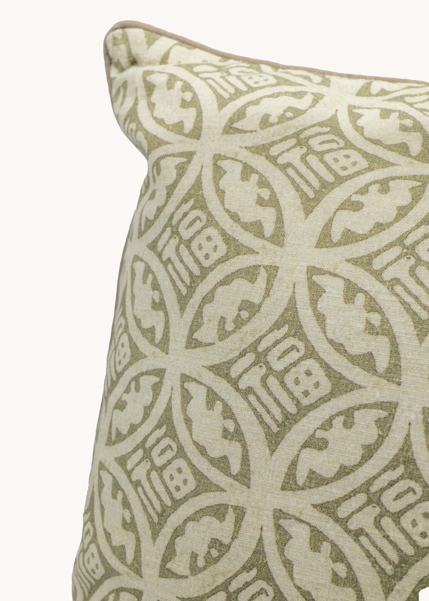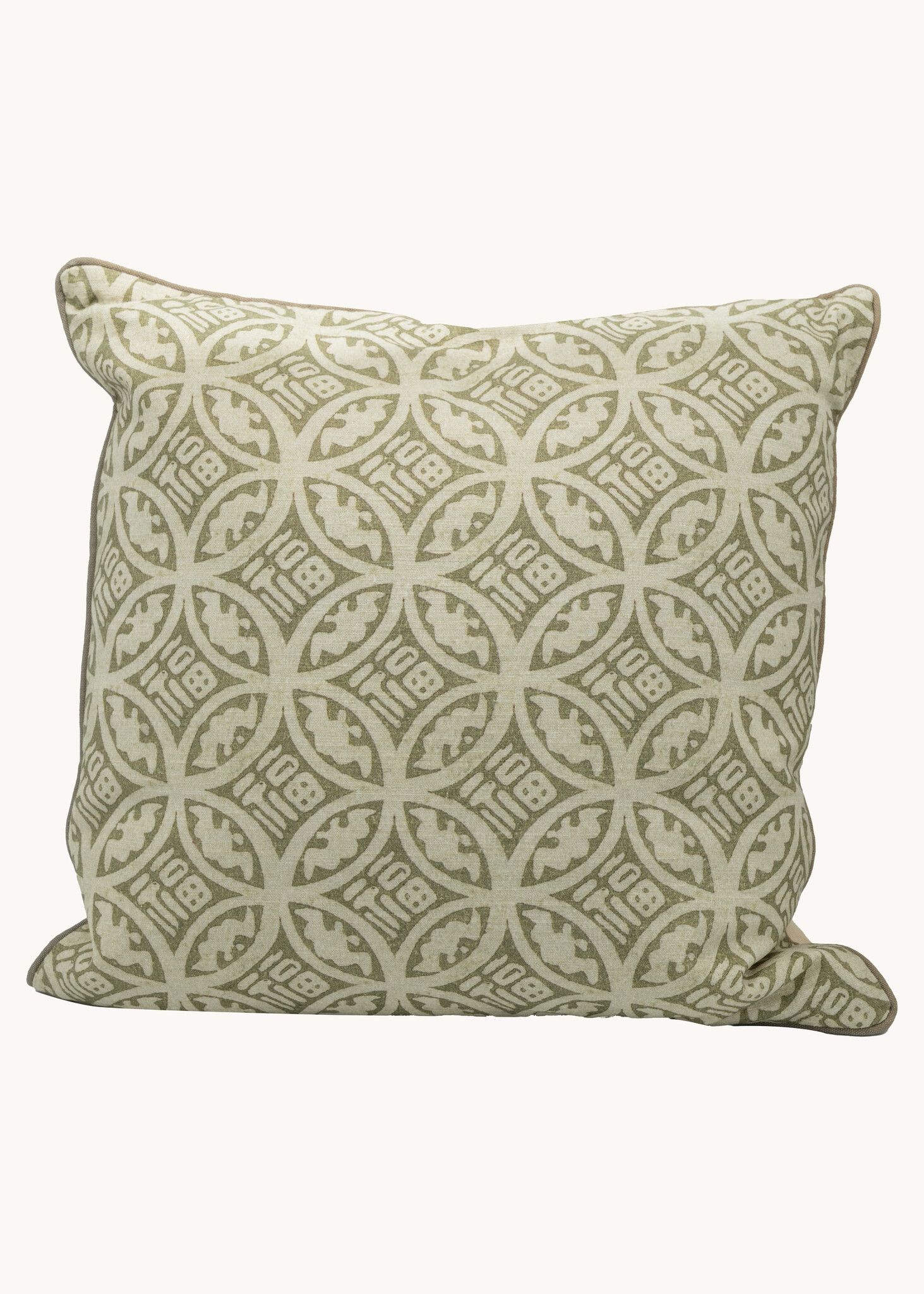 Dit prachtige kussen met zijn subtiele groene patroon is de perfecte manier om een vleugje stijl aan je interieur toe te voegen. De zachte, aardse tint past perfect bij verschillende kleurenpaletten en interieurstijlen.
