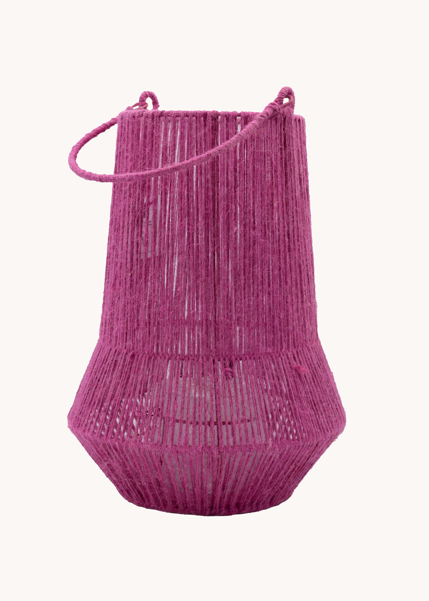 Geef je interieur een instant bohemian touch met deze prachtige lantaarn van roze jute!