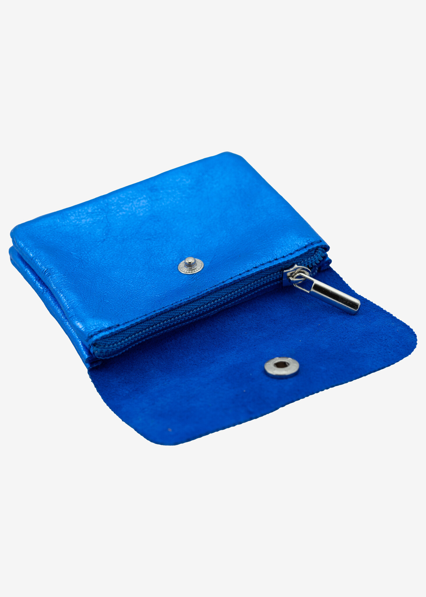 Op zoek naar een portemonnee die net zo shiny is als jij? Deze metallic blauwe leren portemonnee is een echte eyecatcher!