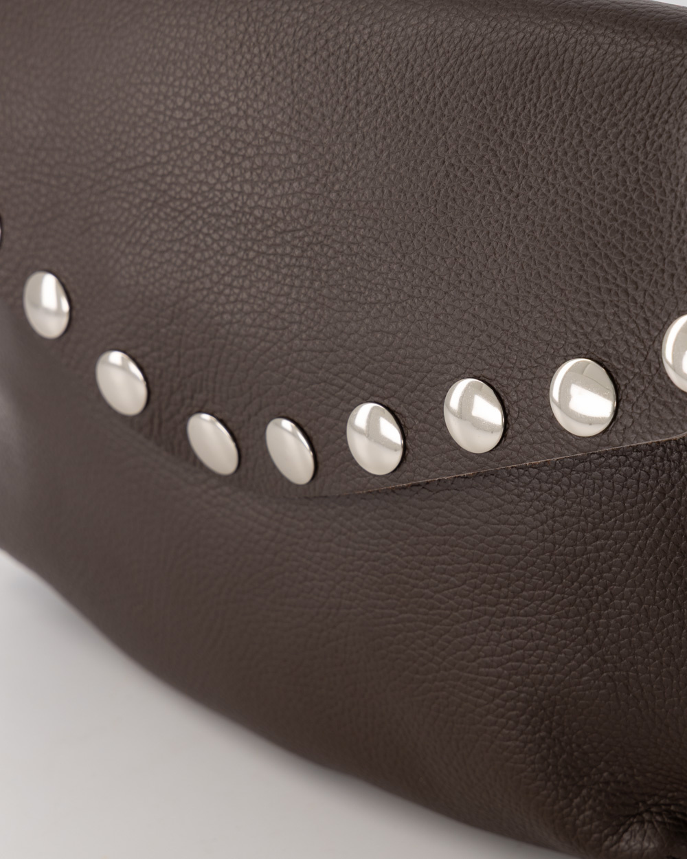 Leren tas met studs Juli donkerbruin