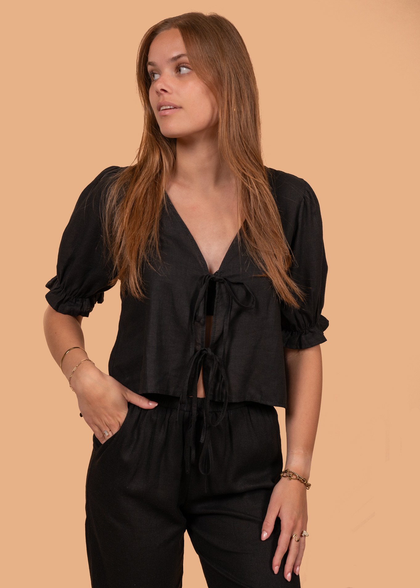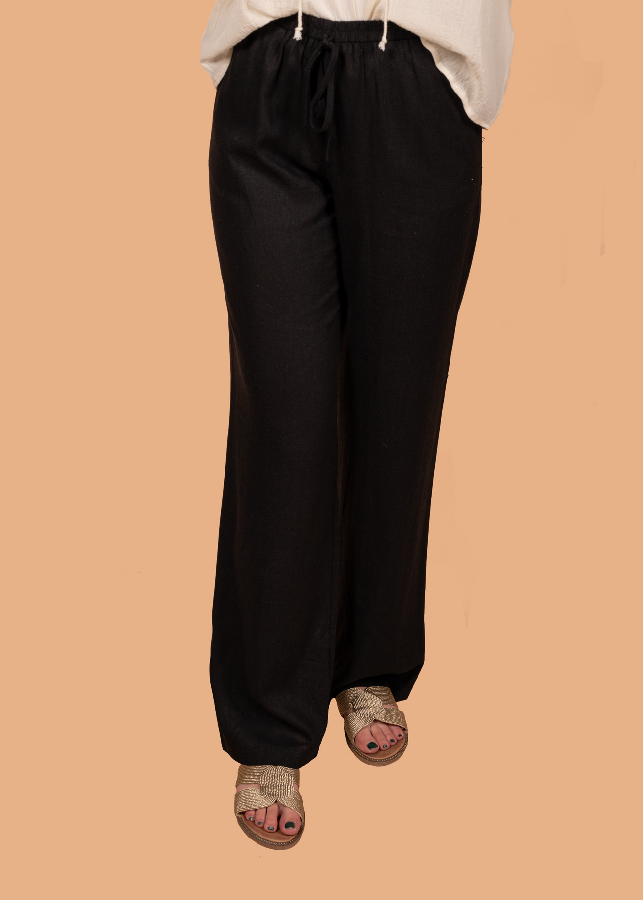 Op zoek naar een comfy broek die er ook nog eens stylish uitziet? Zoek niet verder! Deze linnen blend broek is perfect voor warme zomerdagen. De luchtige stof zorgt ervoor dat je het niet te warm krijgt, terwijl de zwarte kleur 'm makkelijk te combineren is met al je favoriete tops.