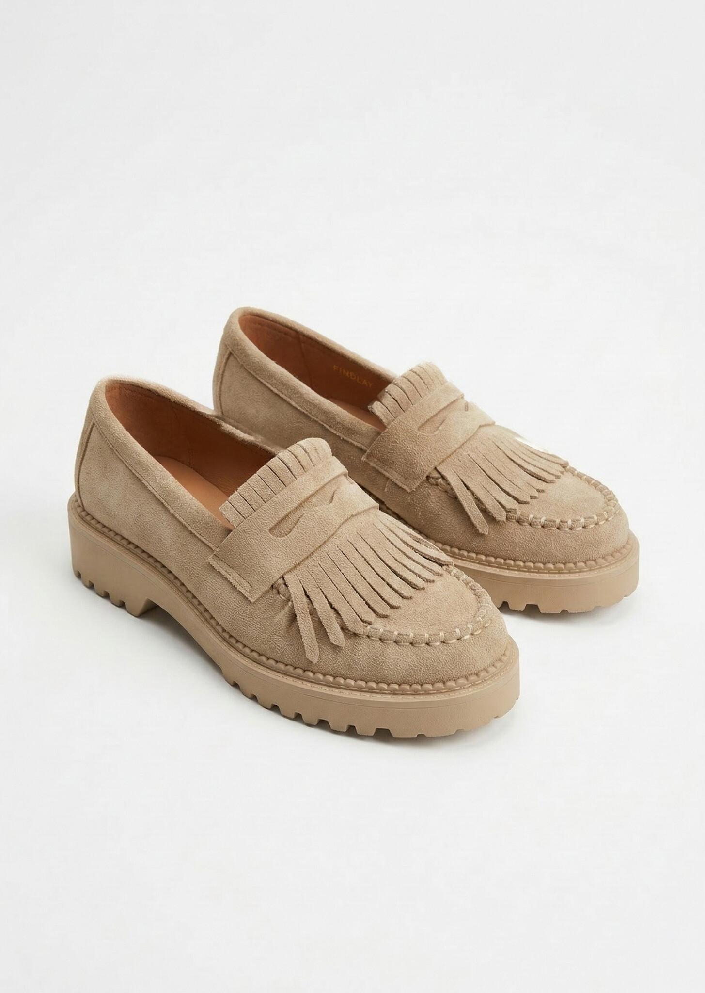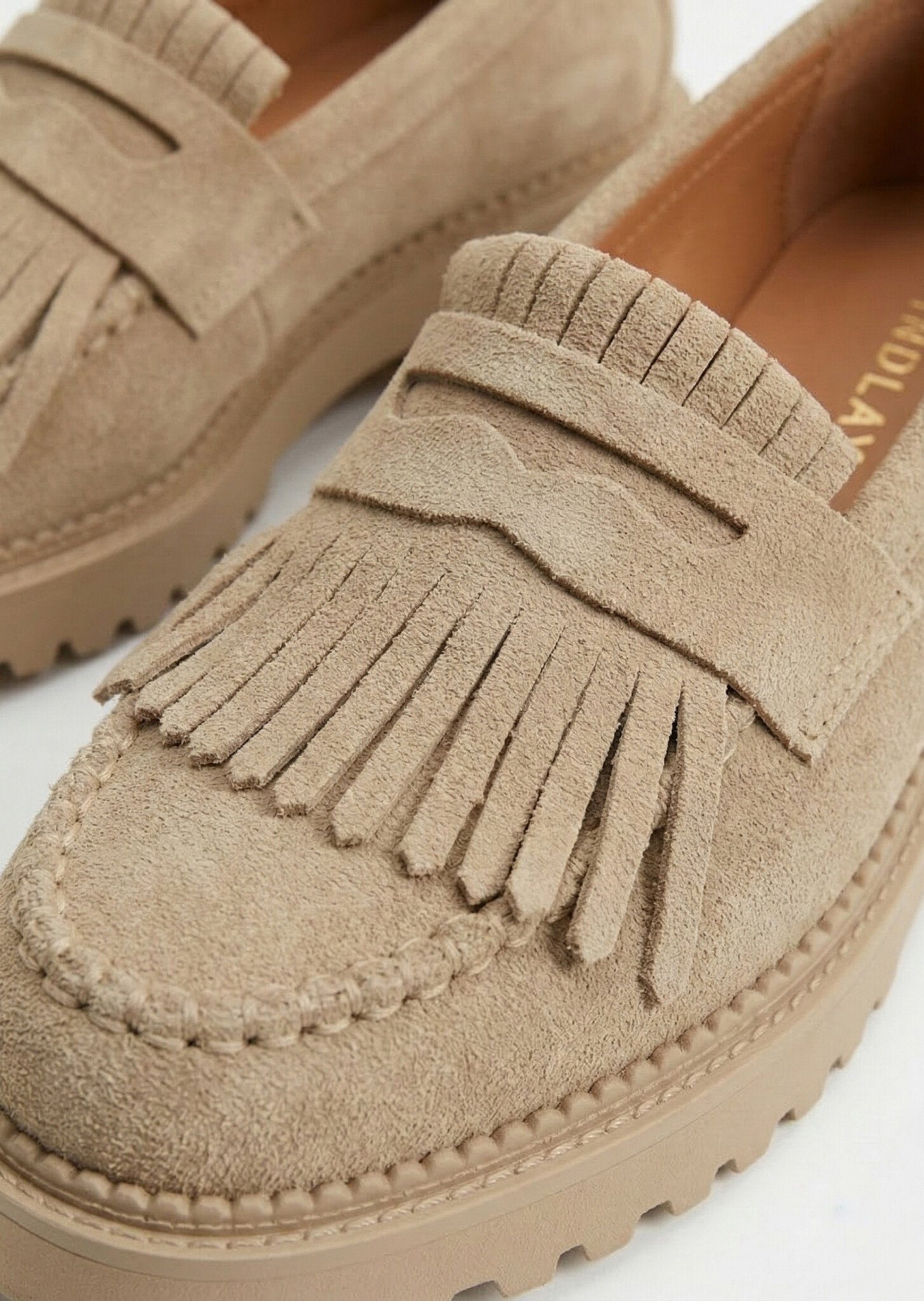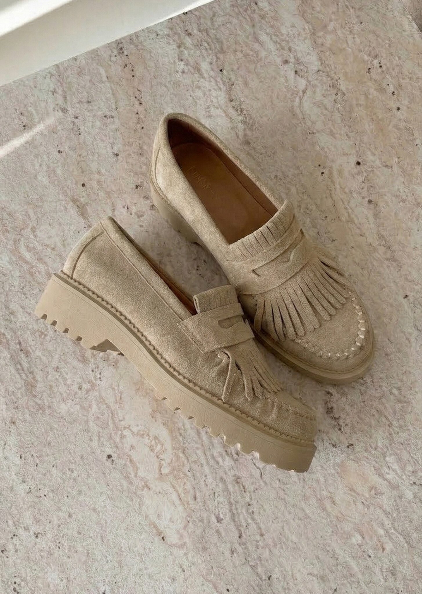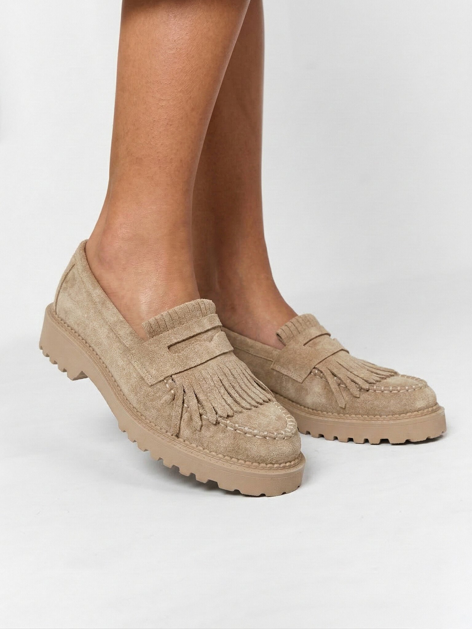 Ontmoet je nieuwe favoriete schoen voor een frisse, verfijnde look: de beige loafers. Deze lichte tint geeft het klassieke loafer-design een zachte, elegante uitstraling, terwijl de grove zool zorgt voor een stoer en eigentijds contrast.