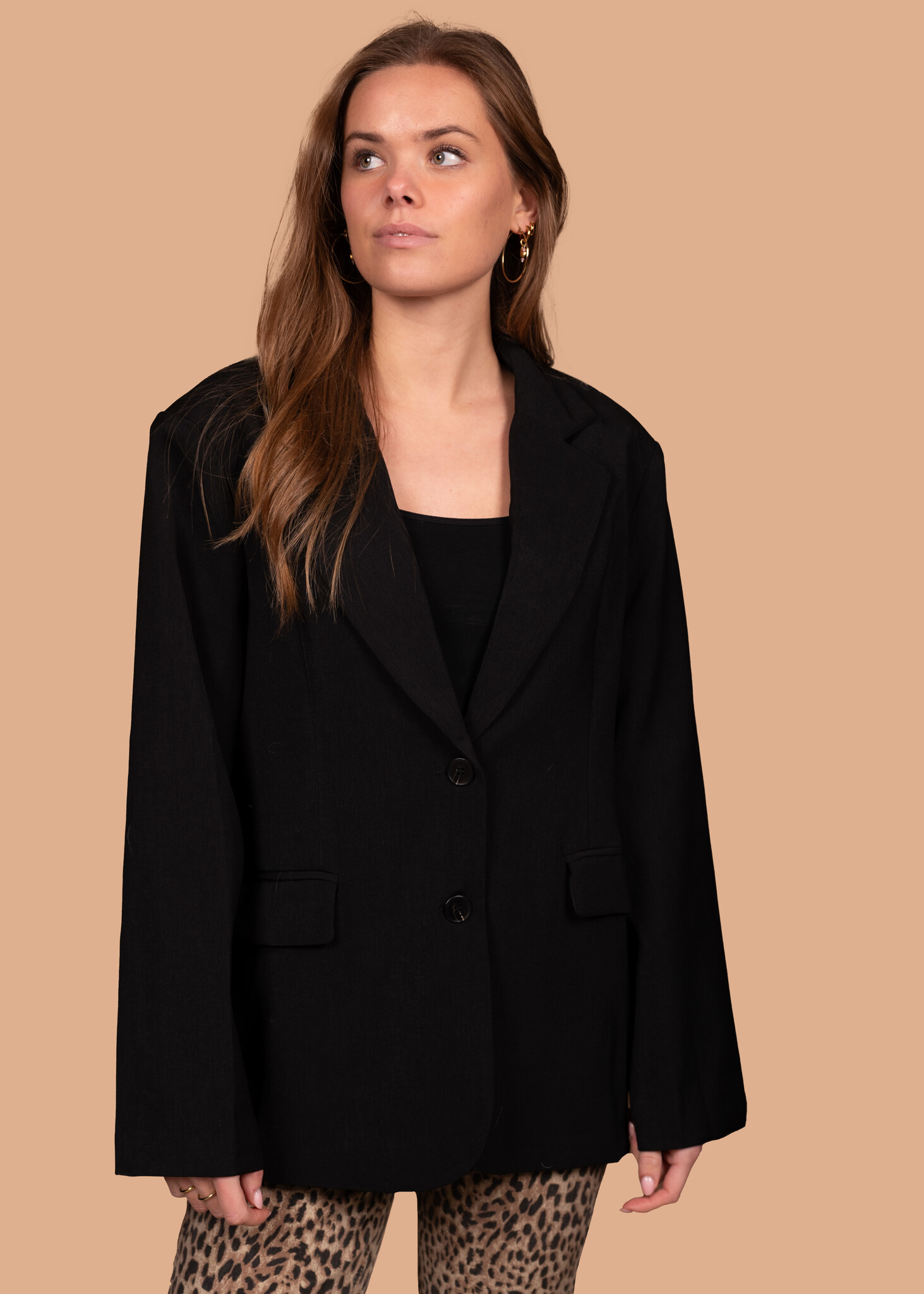 Aan verlanglijst toevoegenLoose fit blazer zwart Macy✨ 4.8 / 5 score via Google Reviews 69,99 Incl. btw Op voorraad Maat S M LSize: *SMLIn winkelmandjeInloggen voor wishlistVoor 15:00 besteldvandaag verzondenAchteraf betalenvia Klarna, binnen 14 dagenGratis verzendingvanaf €75Veilig betalenmet beveiligde SSL verbindingBeschrijvingDeze zwarte loose fit blazer Macy is de perfecte finishing touch voor elke outfit! De oversized fit geeft een trendy look. Draag 'm open of dicht, naar een feestje of gewoon casual. You name it!