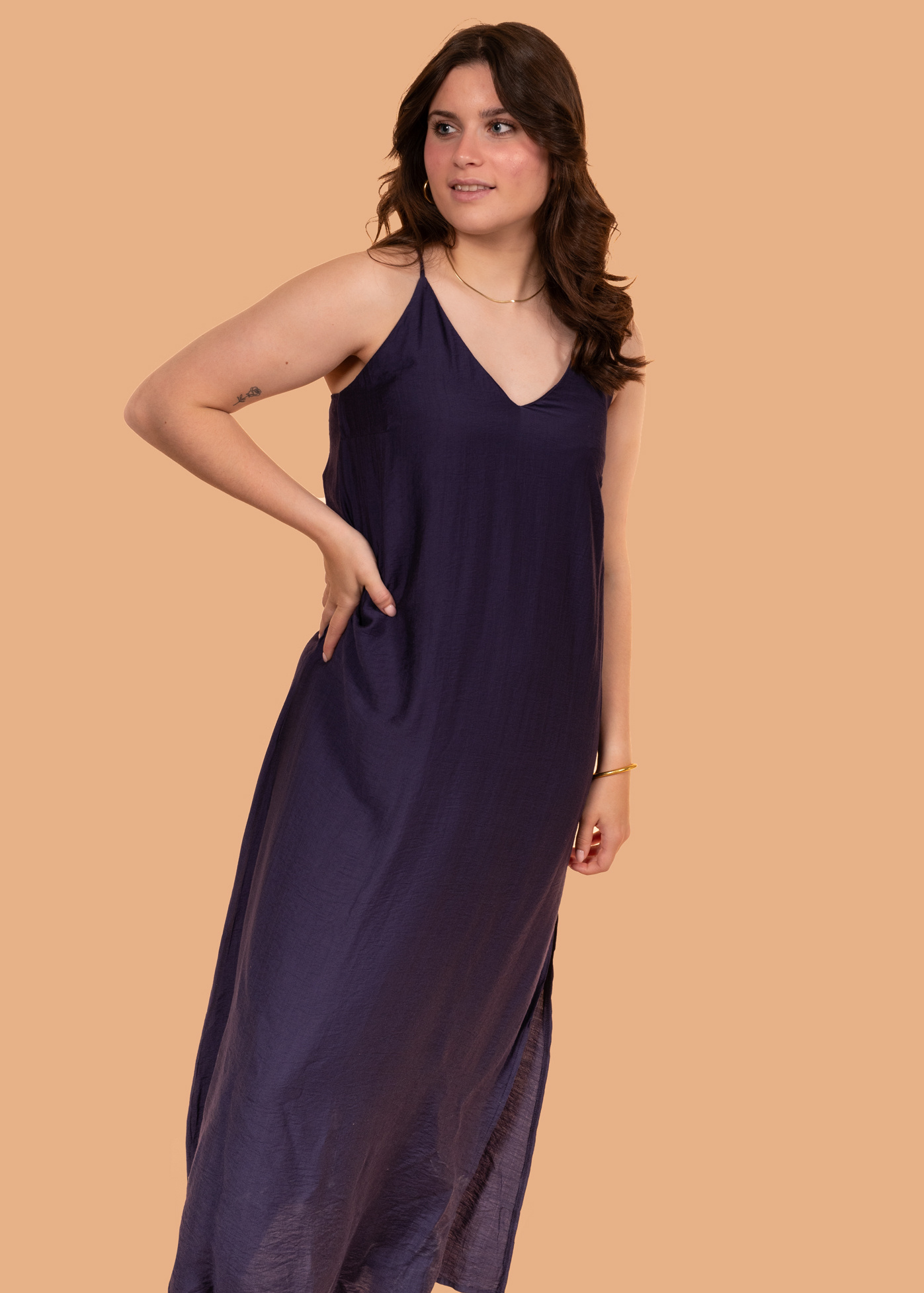 Op zoek naar die ene jurk die je zowel casual als gekleed kunt dragen? Zoek niet verder! Deze prachtige, lange jurk in het blauw is een echte must-have voor jouw garderobe. Gemaakt van luchtige katoen, perfect voor warmere dagen, en met een flatterende pasvorm waar je blij van wordt.
