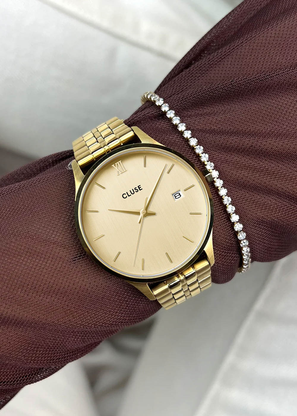 Op zoek naar een stijlvolle accessoire die je outfit helemaal afmaakt? Check dan dit prachtige Cluse horloge met gouden details!