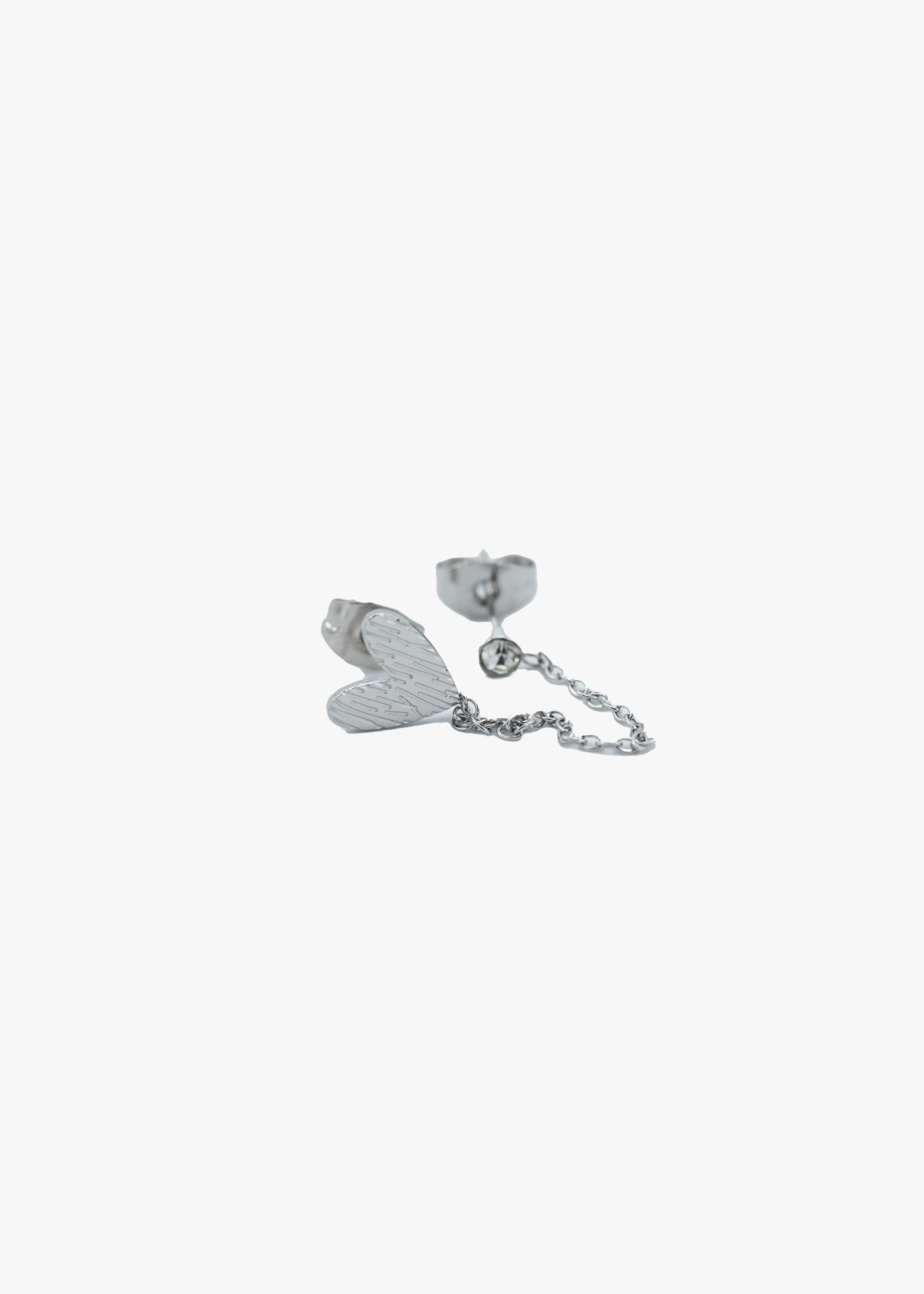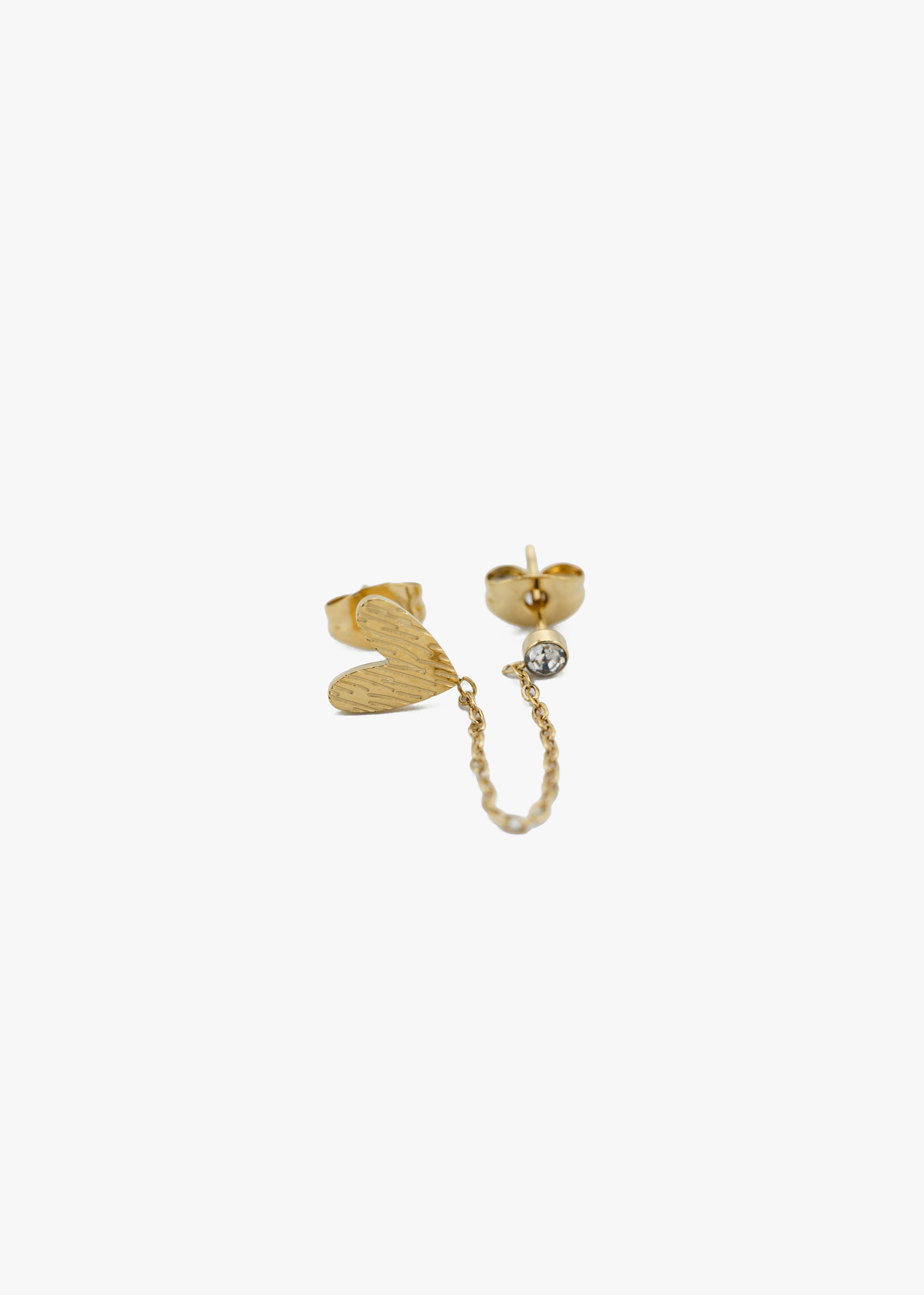 Op zoek naar een oorbel die net even anders is? Check deze beauty! Met een edgy kettinkje dat een schattig hartje verbindt met een sprankelend steentje, rock je met deze oorbel een unieke look.