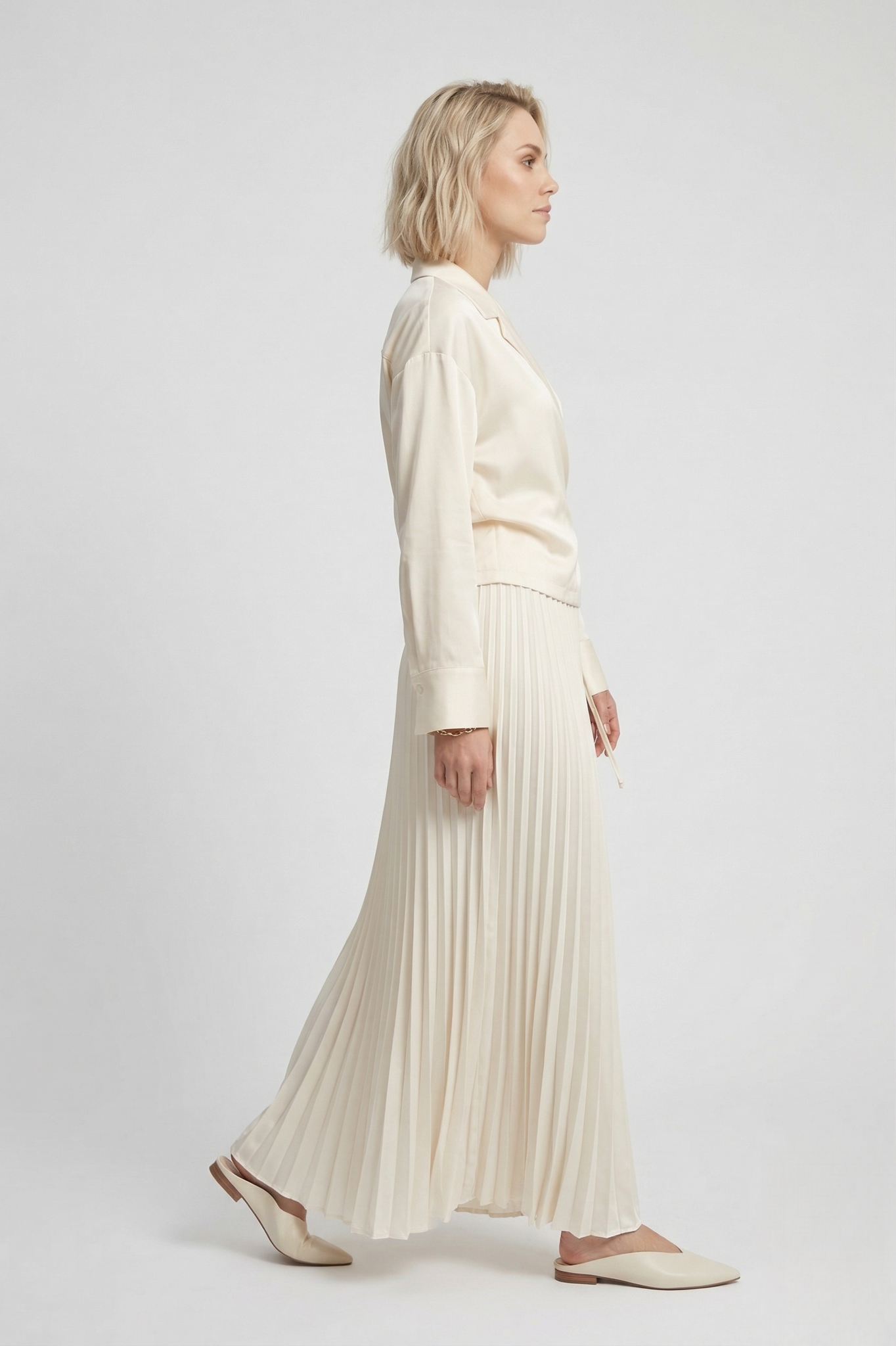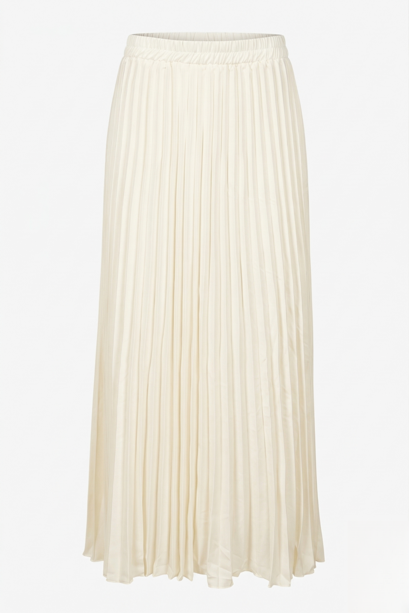 Droom jij ook van een look die effortless chic uitstraalt? Met deze prachtige rok creëer je in een handomdraai een stijlvolle outfit. De rok heeft een elegante plissé en een subtiele satijn-look die je look net dat beetje extra geeft. De off-white kleur is super makkelijk te combineren en past perfect bij elke gelegenheid.