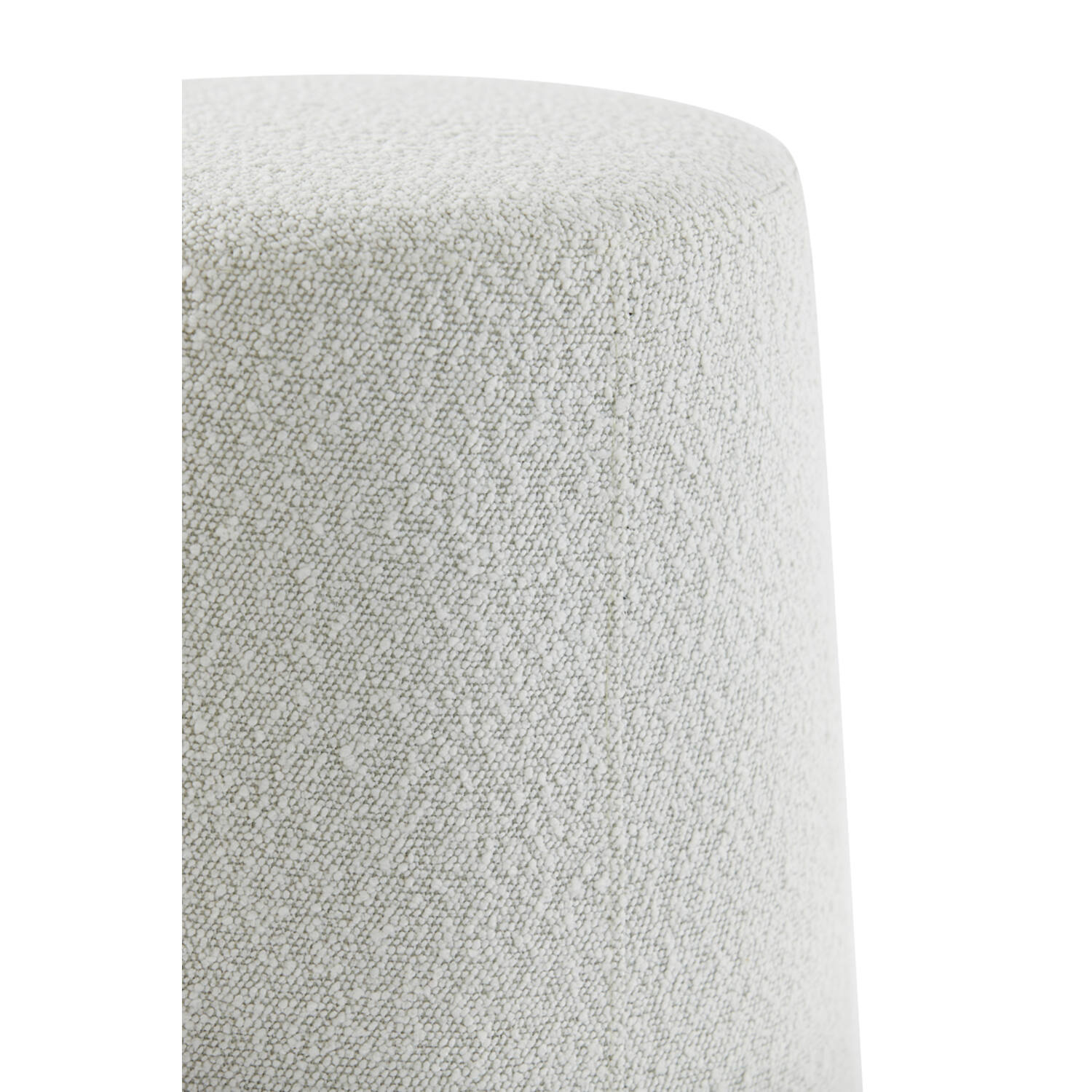 ProductomschrijvingPrachtige poef met boucle stof. De poef heeft een unieke uitstraling en kun je ook perfect als kleine tafel gebruiken.